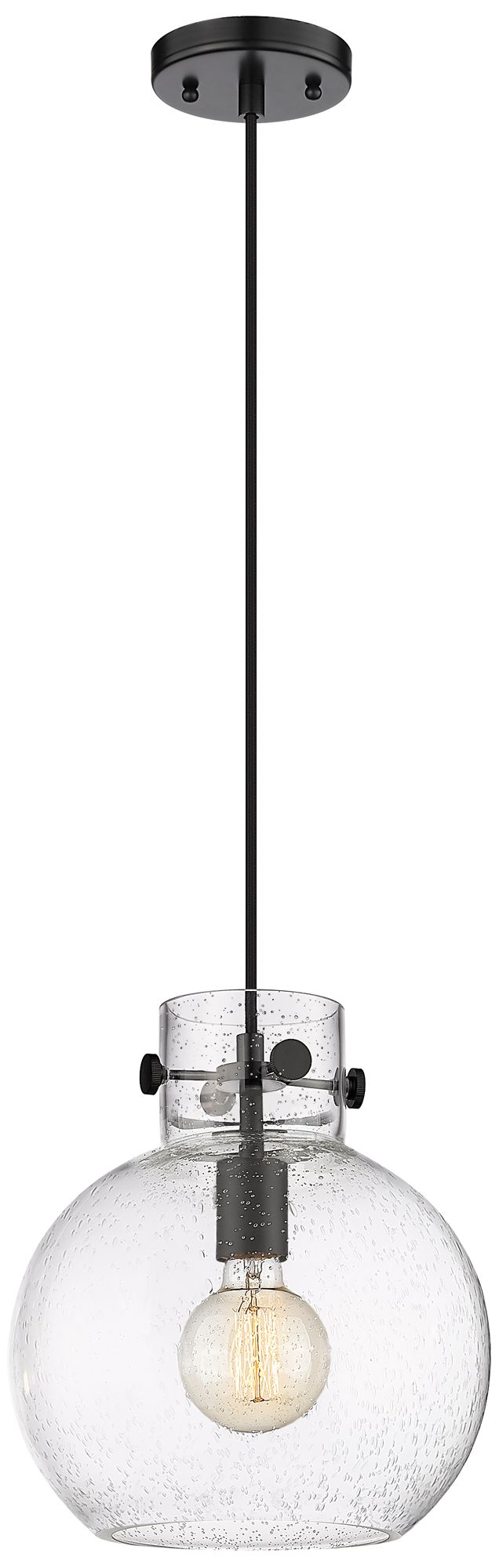 Newton Sphere 10" Wide Cord Hung Matte Black Pendant With Seedy Shade