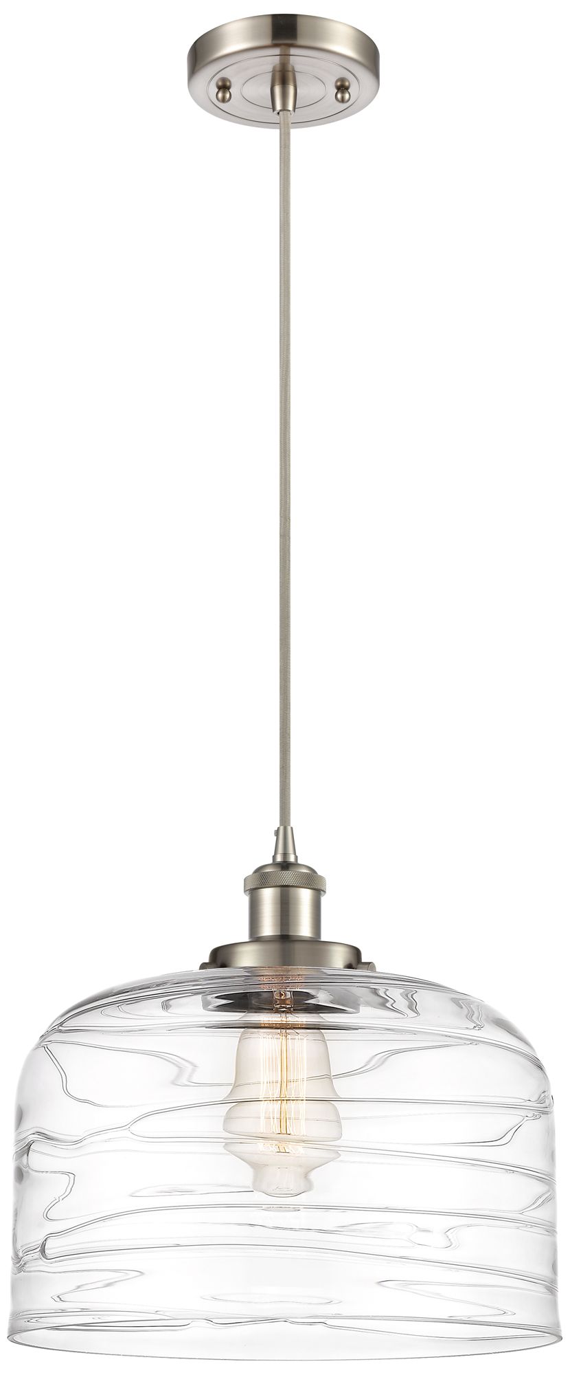 Ballston Urban Bell 12" LED Mini Pendant - Satin Nickel - Clear Deco S