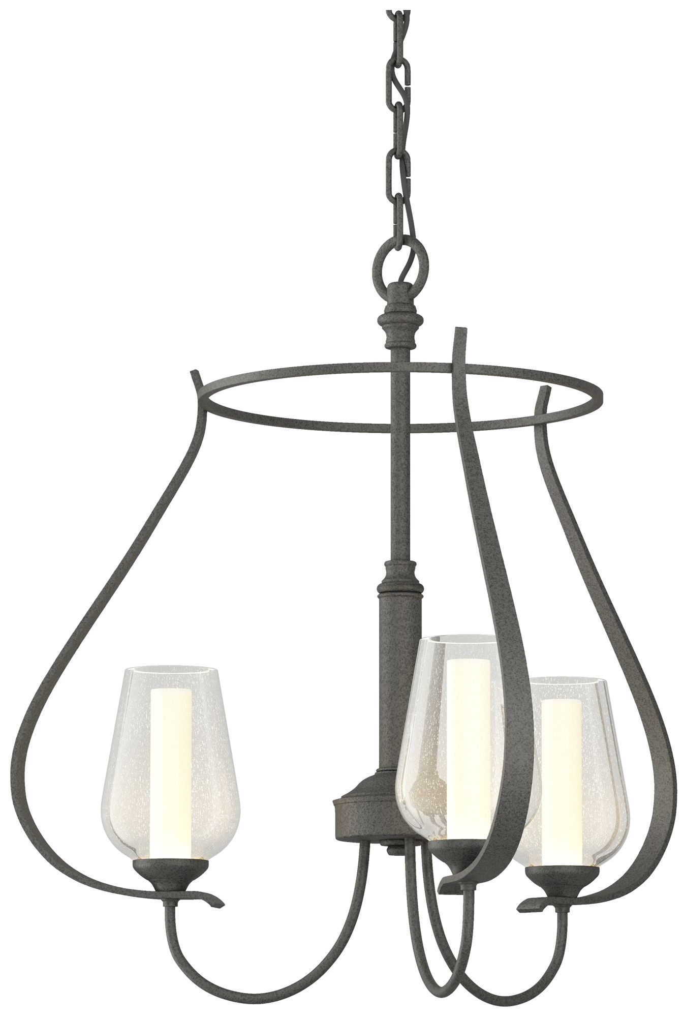 Flora 19.4"W 3 Arm Round Natural Iron Chandelier With Opal and Seeded