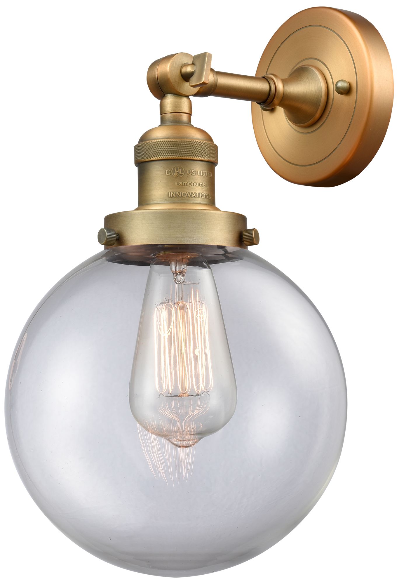 Franklin Restoration Large Beacon 8" Brushed Brass Sconce w/ Clear Sha