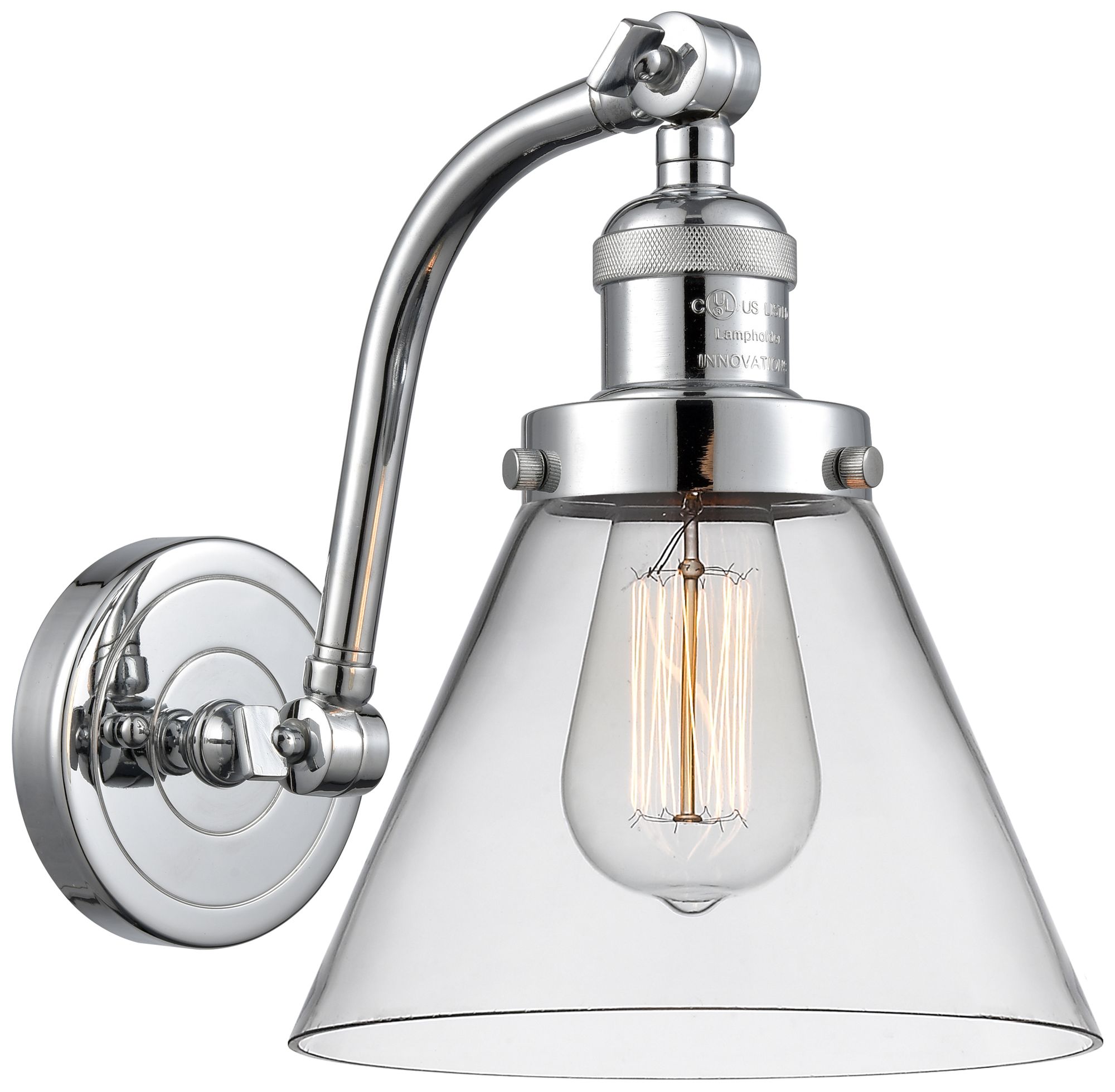 Cone 8" Polished Chrome Sconce w/ Clear Shade