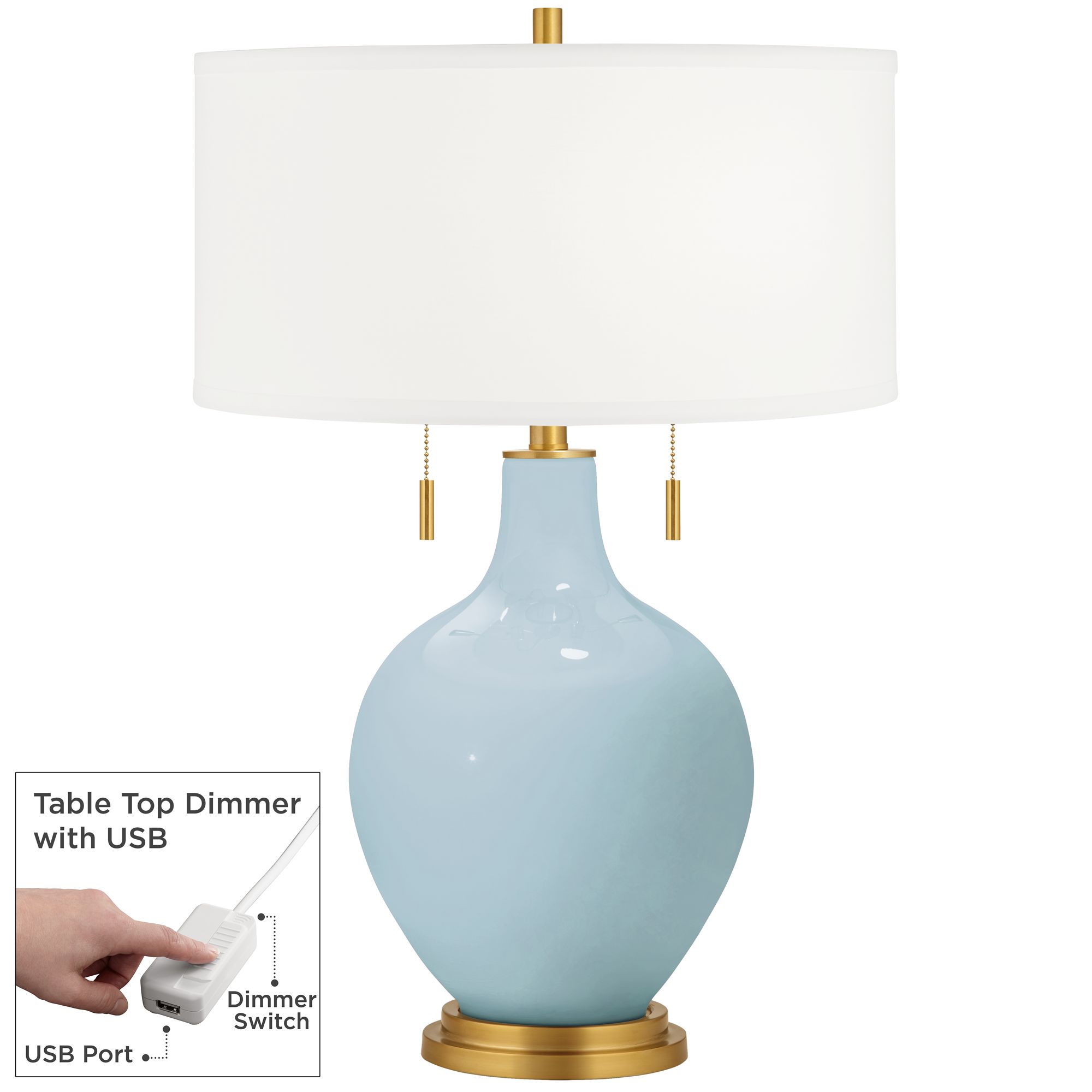 Color Plus Toby Brass 28" Vast Sky Blue Table Lamp with USB Dimmer