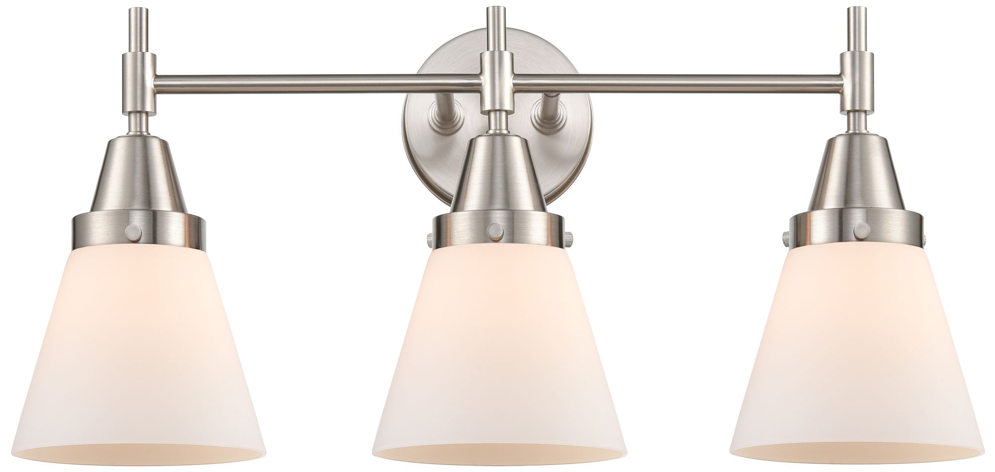 Caden Cone 24.25"W 3 Light Satin Nickel Bath Vanity Light w/ White Sha