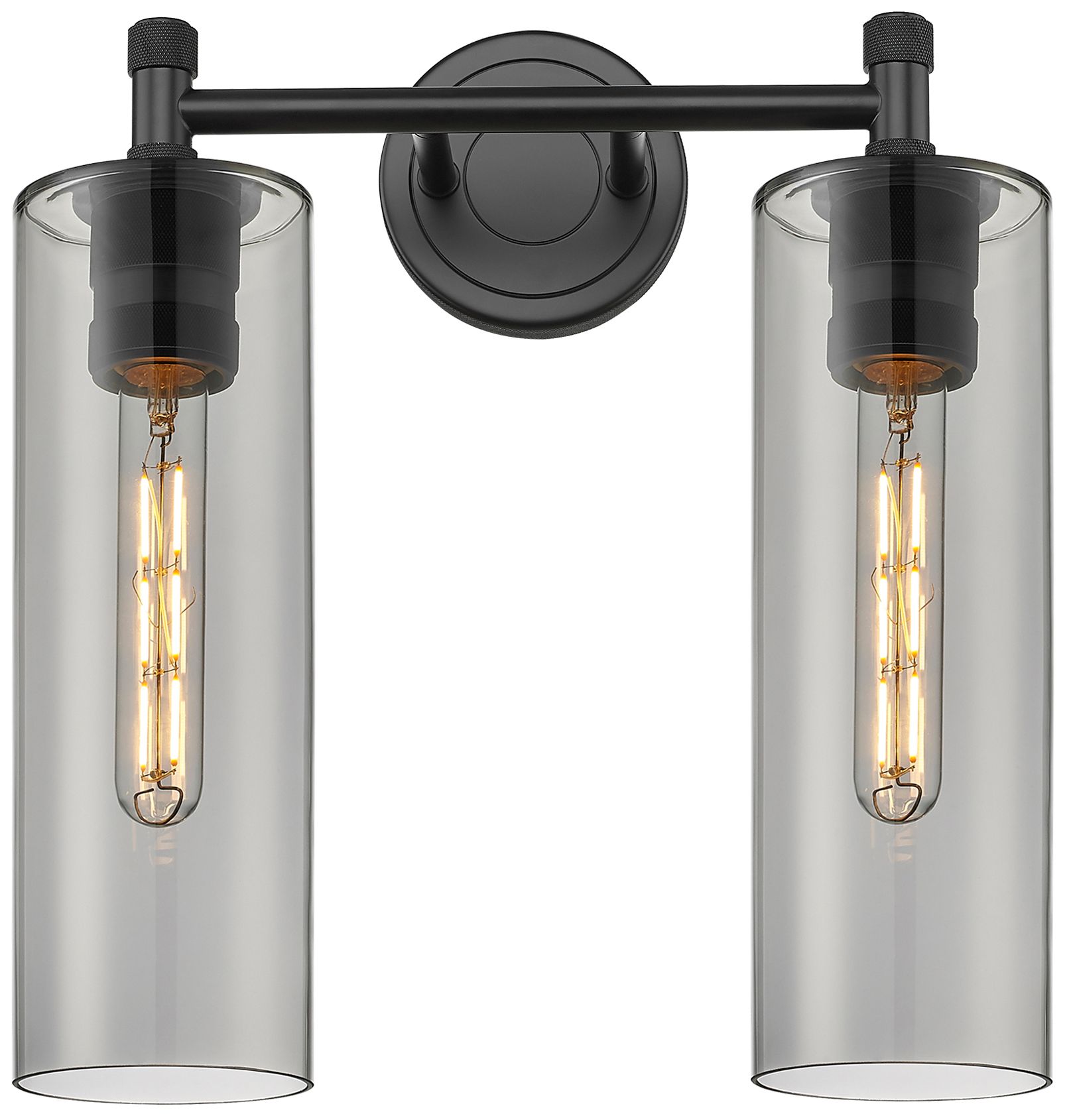 Crown Point 13.88"W 2 Light Matte Black Bath Light With Plated Smoke S
