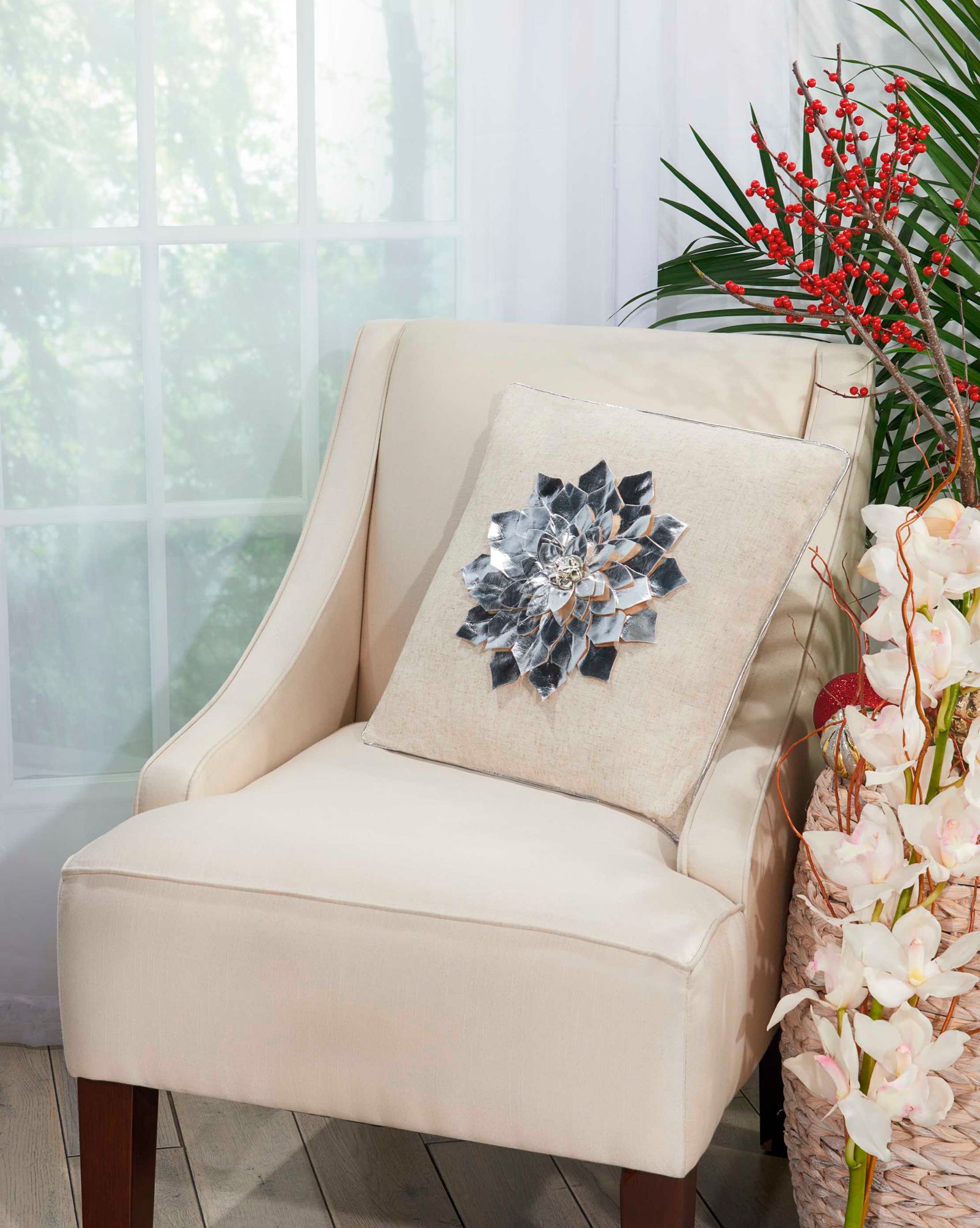 Home for The Holiday Metallic Pointsettia 16" Square Pillow