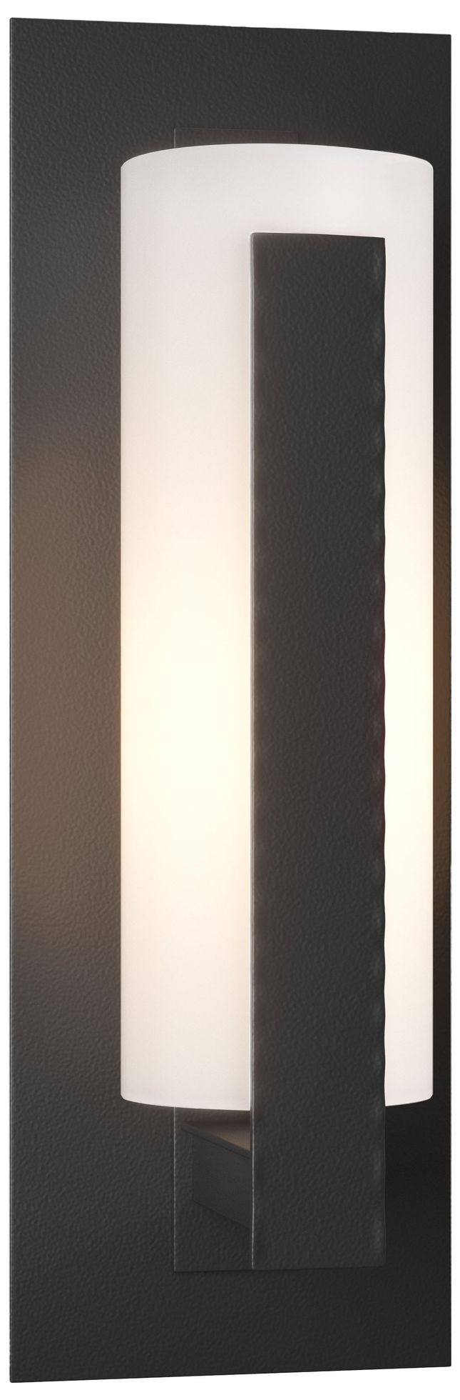 Forged Vertical Bars 15"H Small Black Outdoor Sconce w/ Opal Shade