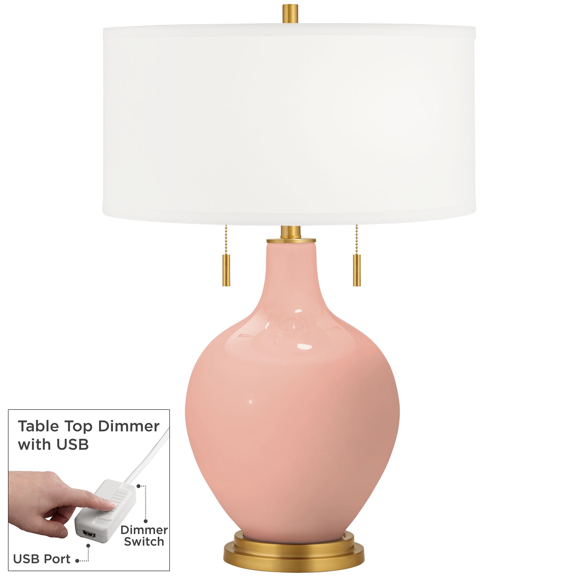 Color Plus Toby Brass 28" Mellow Coral Pink Table Lamp with USB Dimmer