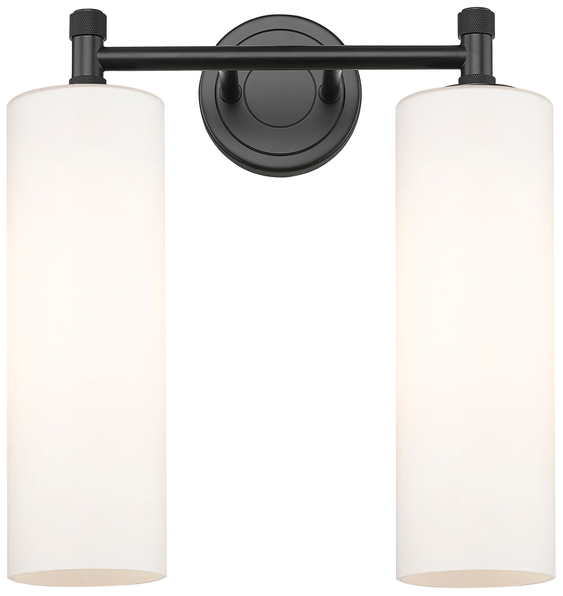 Crown Point 13.88"W 2 Light Matte Black Bath Light With Matte White Sh