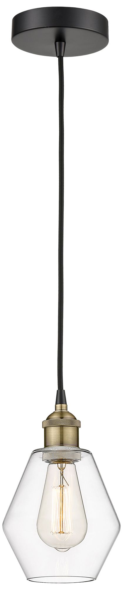 Cindyrella 6" Wide Black Brass Corded Mini Pendant With Clear Shade