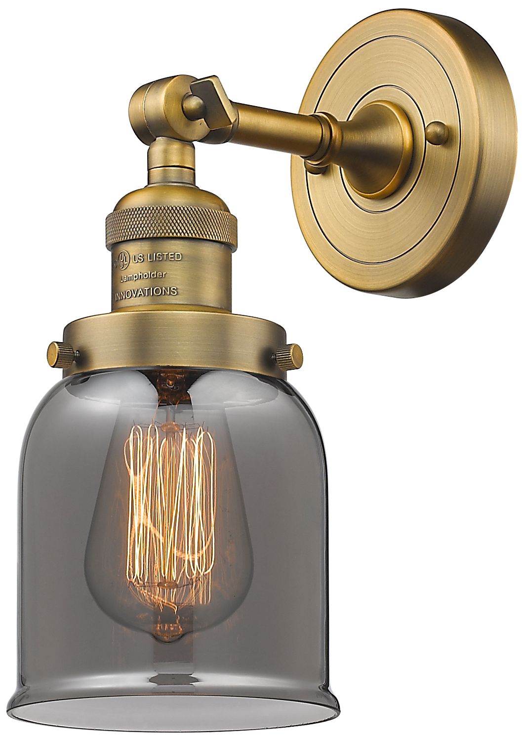 Franklin Restoration Small Bell 5" Brushed Brass Sconce w/ Smoke Shade