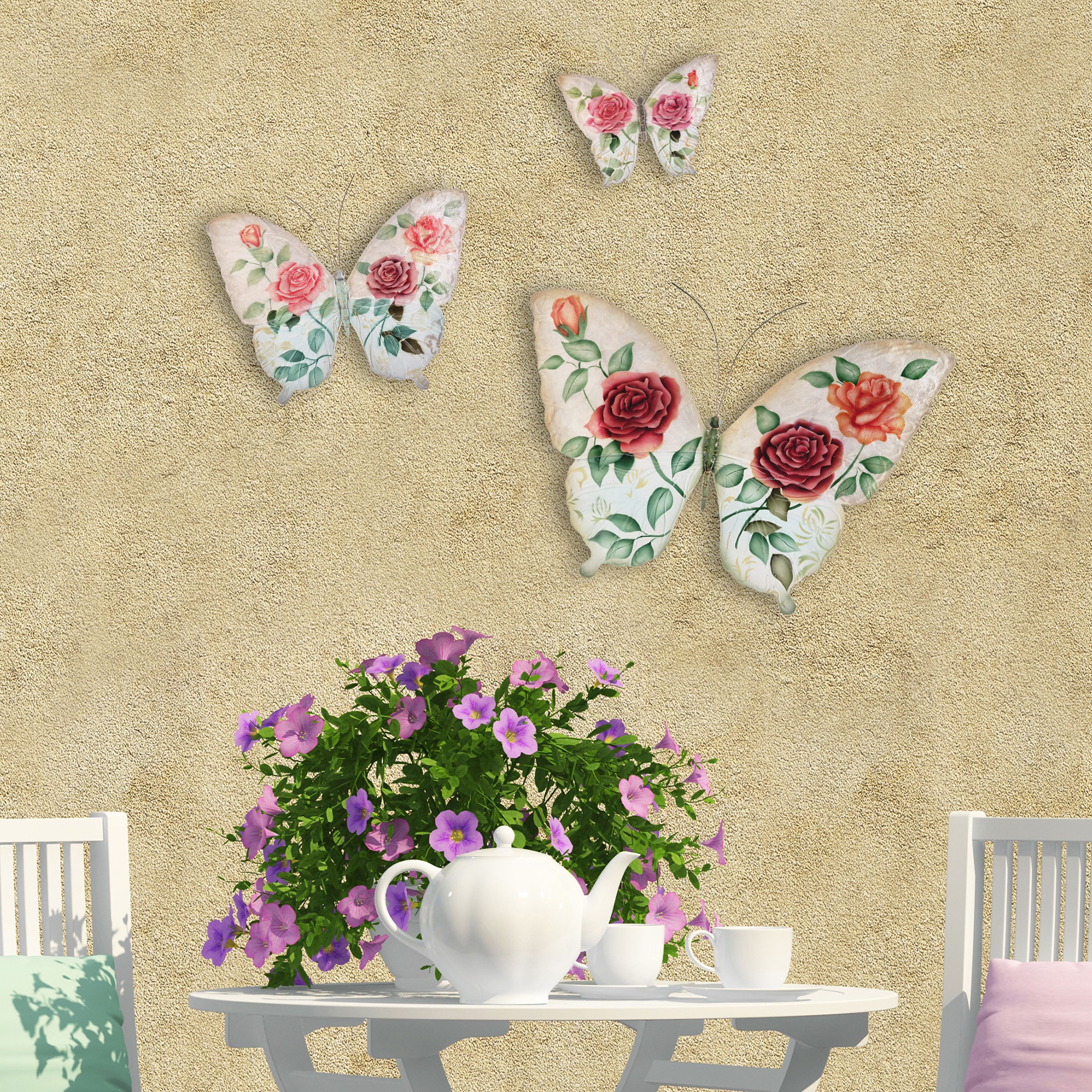 Butterfly 18"W White Pink Capiz Shell Wall Decor Set of 3