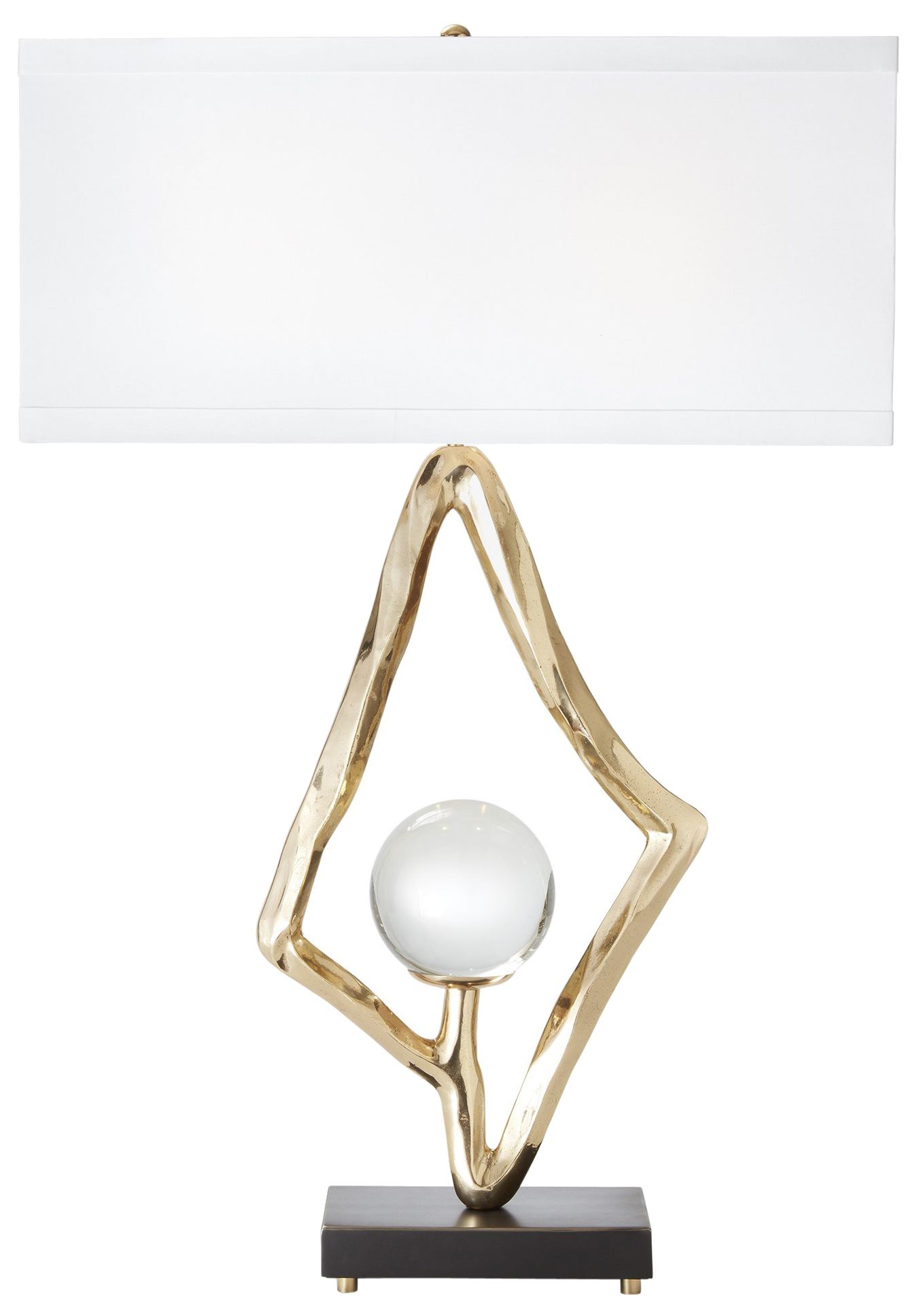 Abstract Lamp w/6" Crystal Sphere-Brass