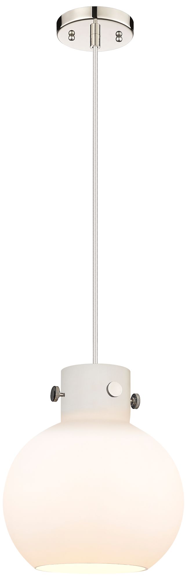 Newton Sphere 10" Wide Cord Hung Polished Nickel Pendant With White Sh