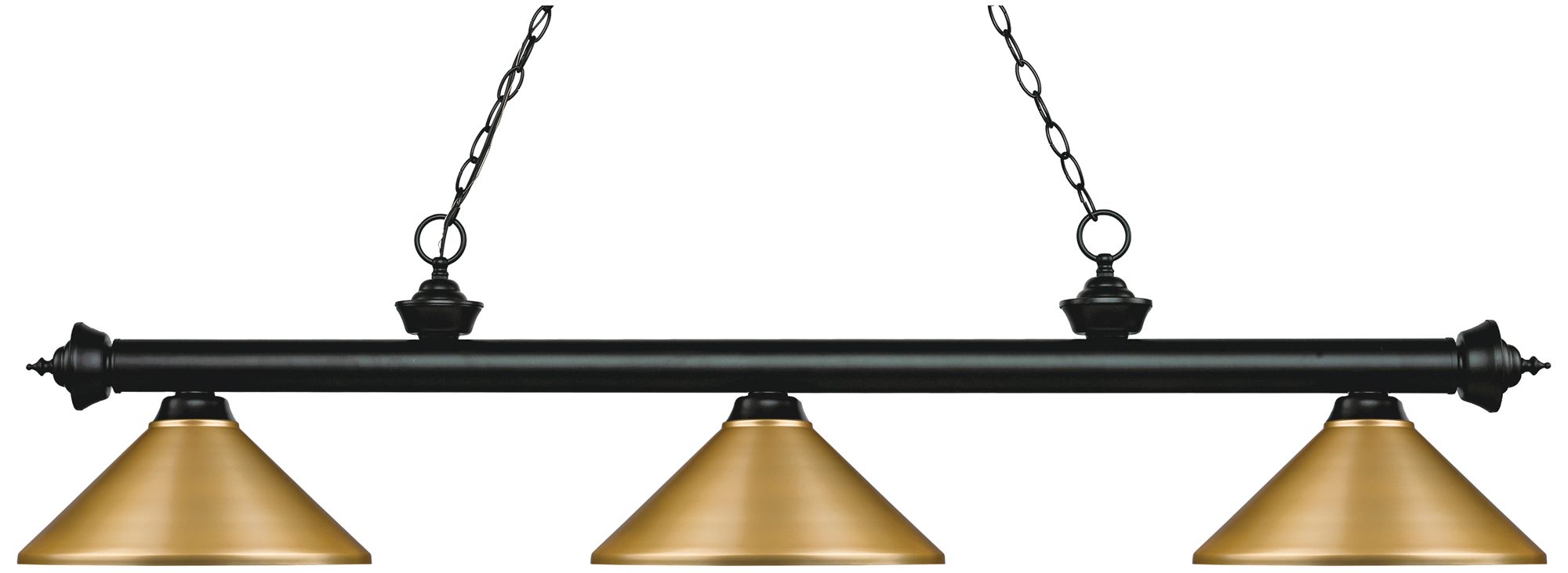 Z-Lite Riviera 57 1/4" Matte Black Brass Cone 3-Light Billiard Light