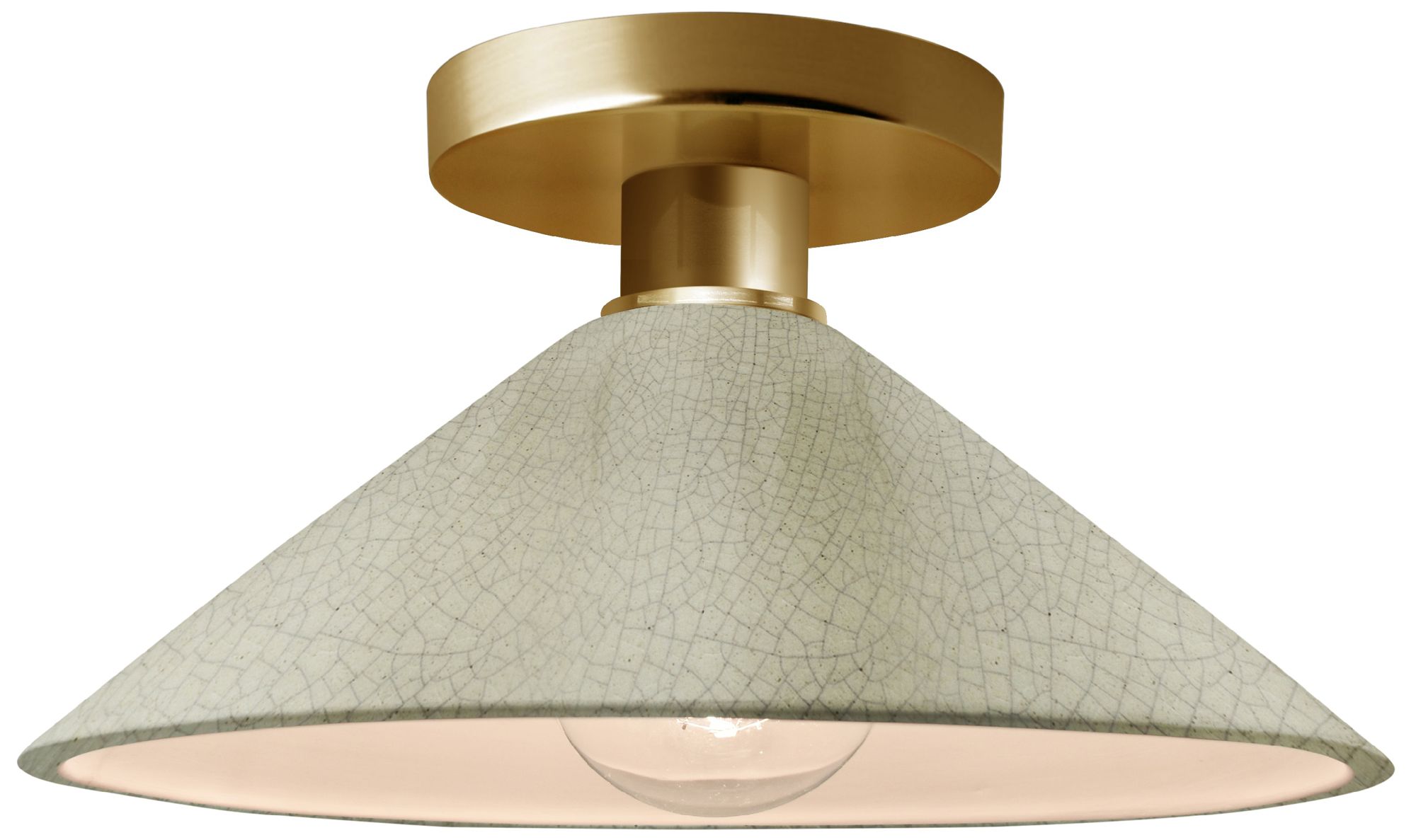 Radiance 11.75"W Celadon Frame Polished Brass Flare LED Semi.Flush