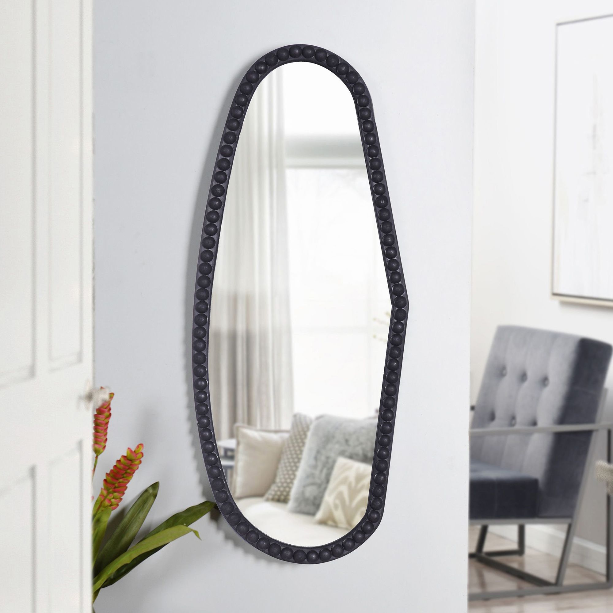 47.25"H x 19.9"W Matte Black Mirror With Organic Shape And Knob F