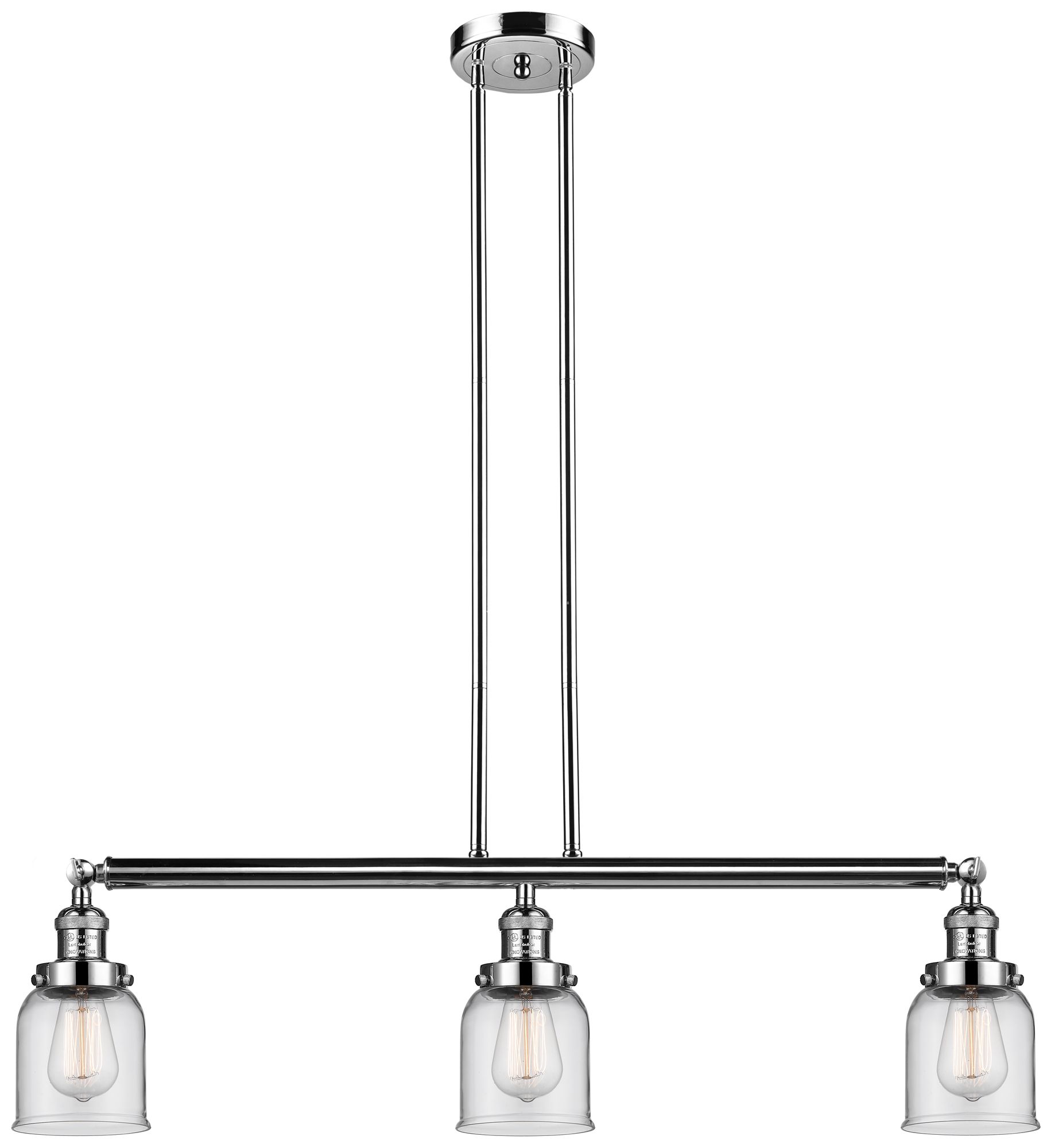 Bell 37.5"W 3 Light Polished Nickel Stem Hung Island Light w/ Clear Sh