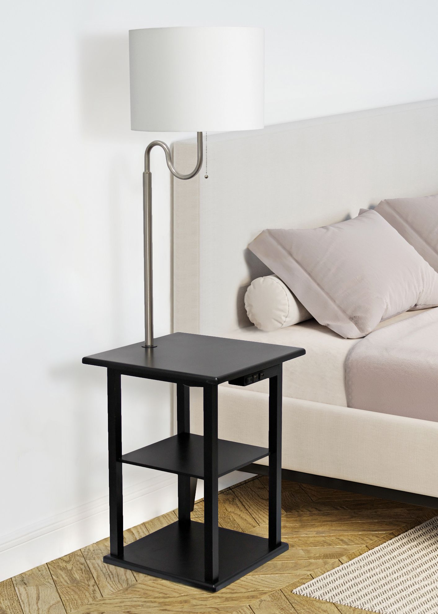 Simple Designs 57" Black End Table Floor Lamp with USB and Outlet