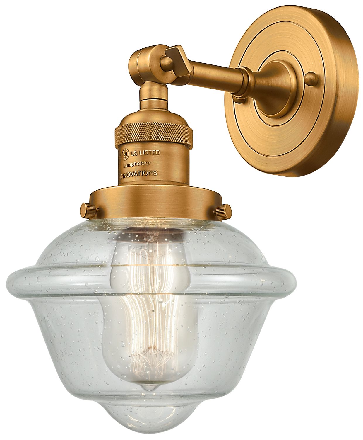 Franklin Restoration Small Oxford 8" Brushed Brass Sconce w/ Seedy Sha