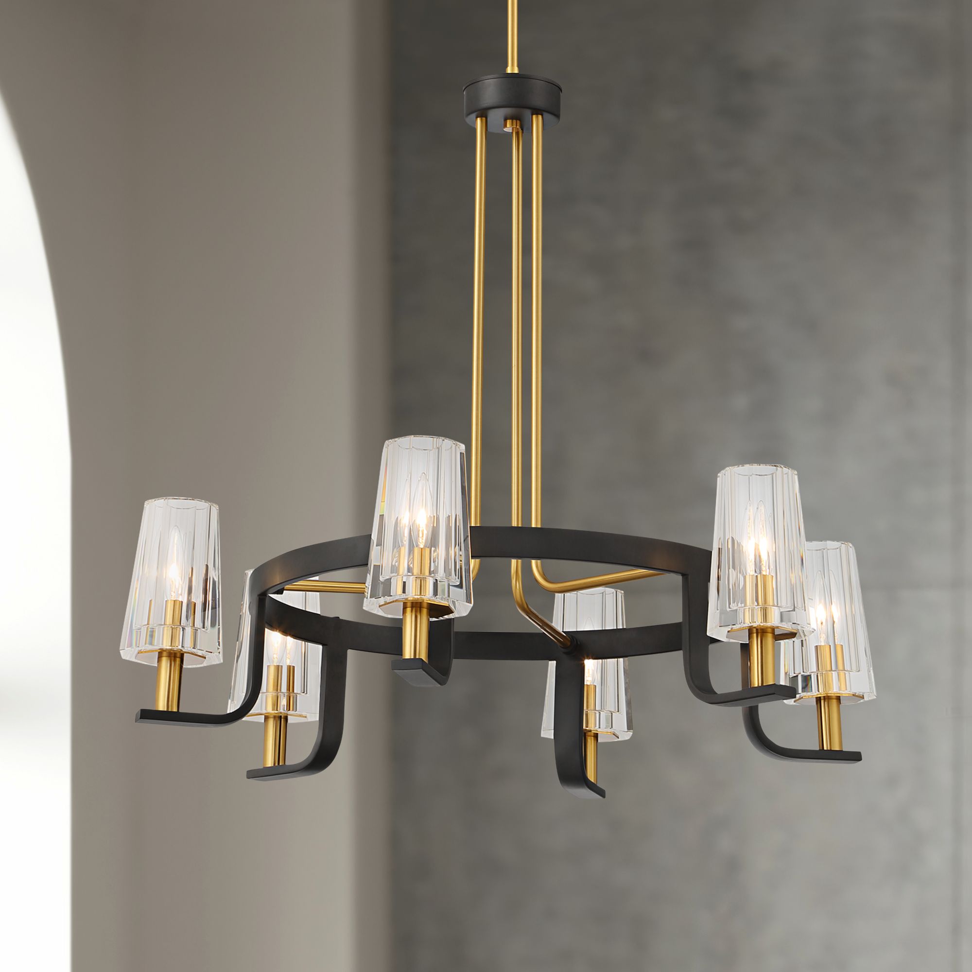 Possini Bronxville 30" Wide Black and Brass 6-Light Ring Chandelier
