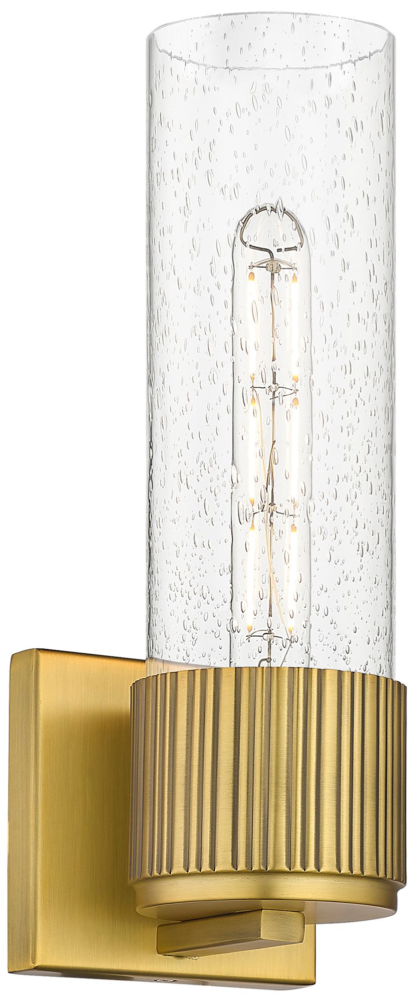 Bolivar 15" High Brushed Brass Sconce With Seedy Glass Shade