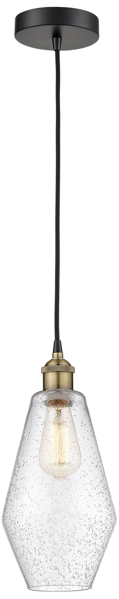 Cindyrella 7" Wide Black Brass Corded Mini Pendant With Seedy Shade