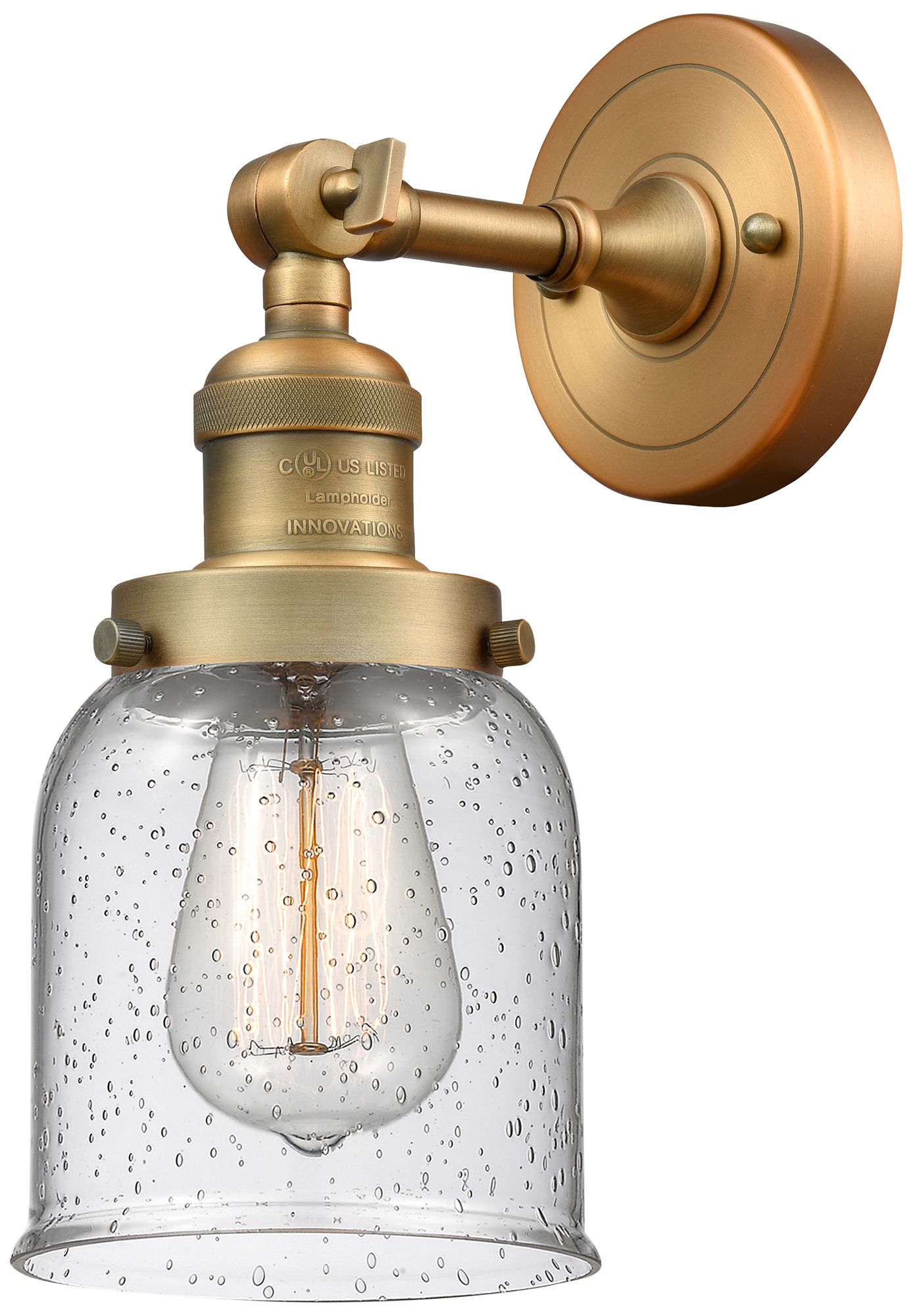 Franklin Restoration Small Bell 5" Brushed Brass Sconce w/ Seedy Shade