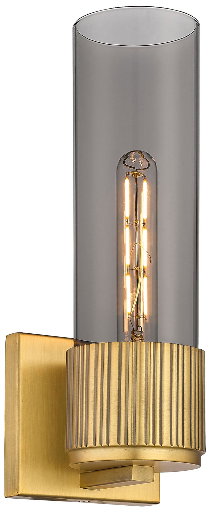 Bolivar 15" High Brushed Brass Sconce With Plated Smoke Glass Shade