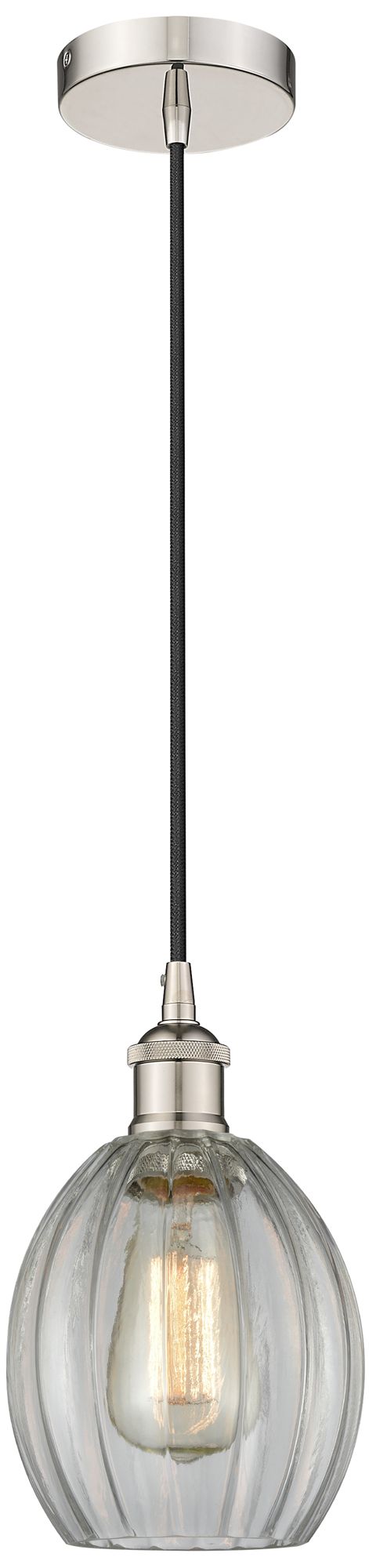Edison Eaton 6" Polished Nickel Cord Hung Mini Pendant w/ Clear Shade