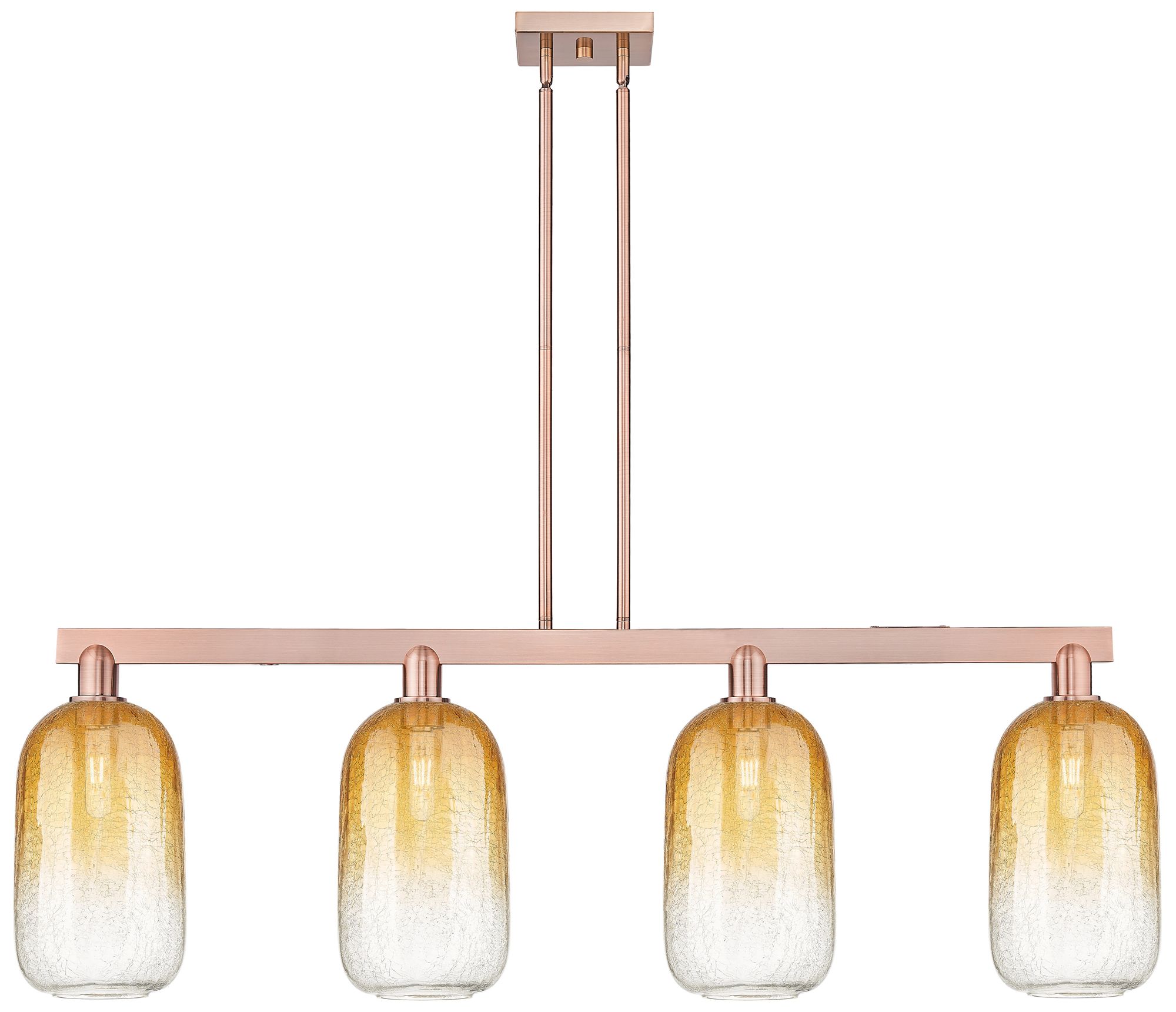 Brookhaven Cloche 48"W 4 Light Copper Stem Island Light w/ Amber Shade