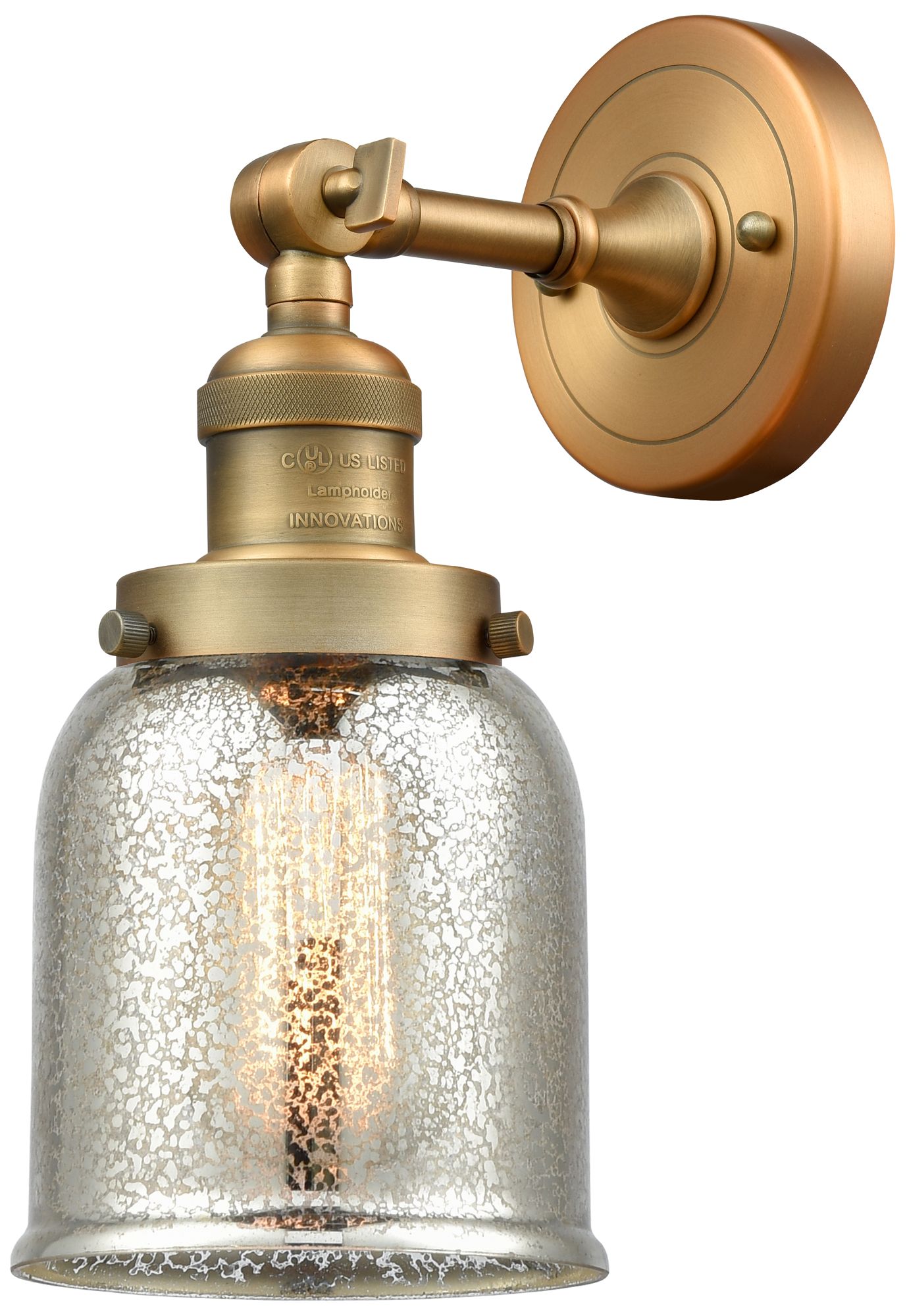 Franklin Restoration Small Bell 5" Brushed Brass Sconce w/ Mercury Sha