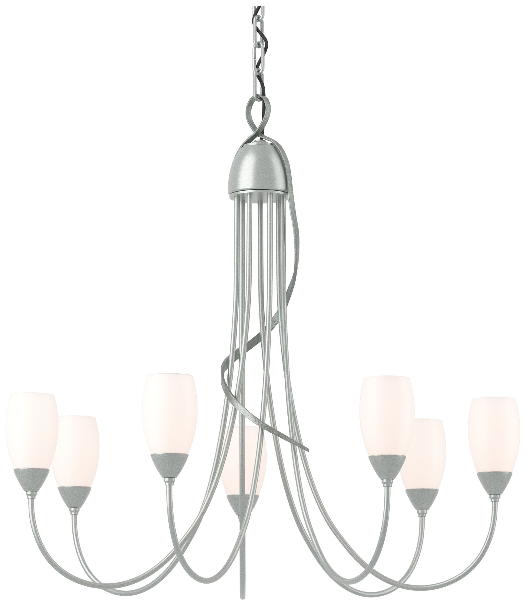 Flora 24.9" Wide 7 Arm Vintage Platinum Chandelier With Opal Glass