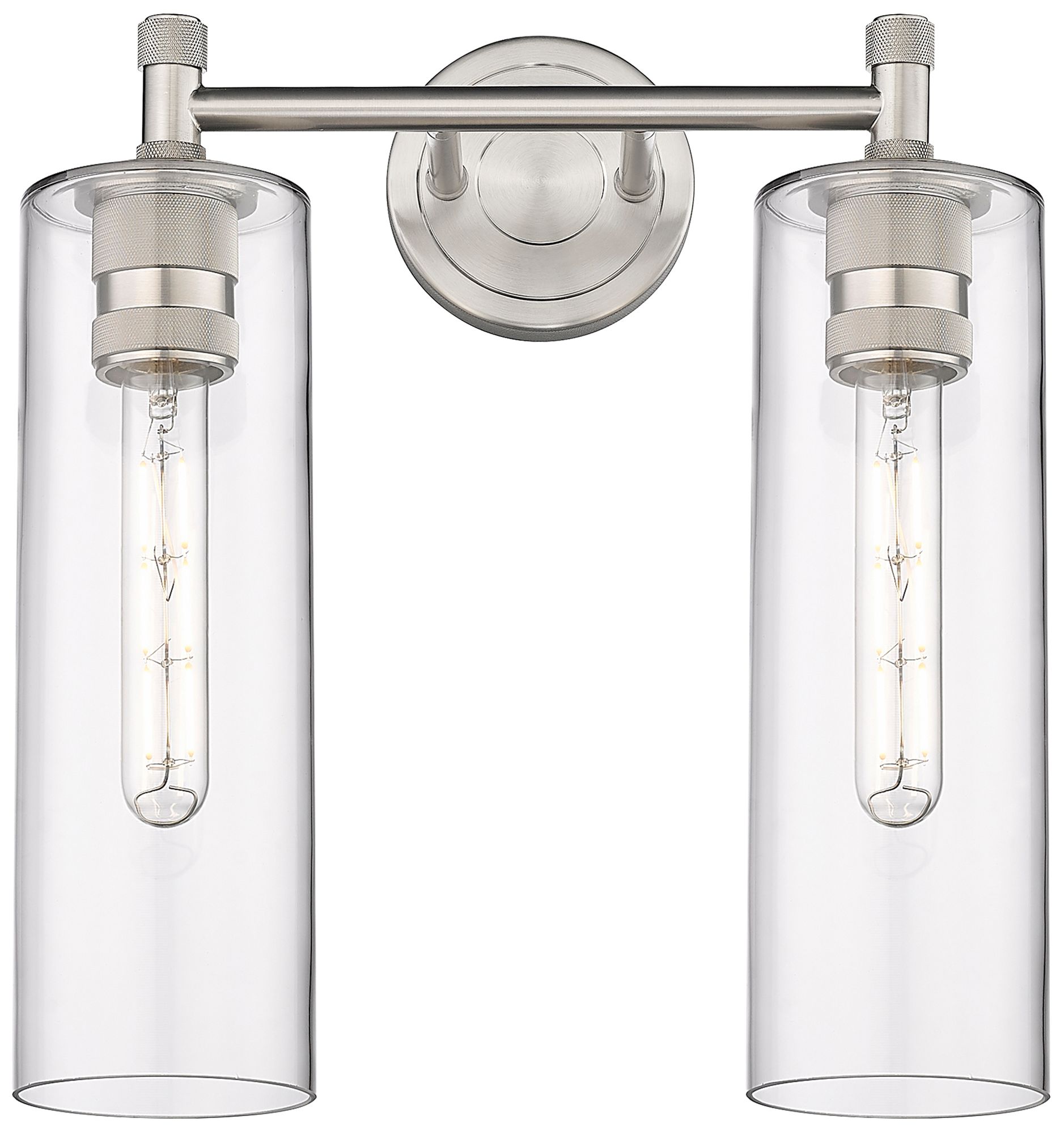Crown Point 13.88" Wide 2 Light Satin Nickel Bath Light With Clear Sha