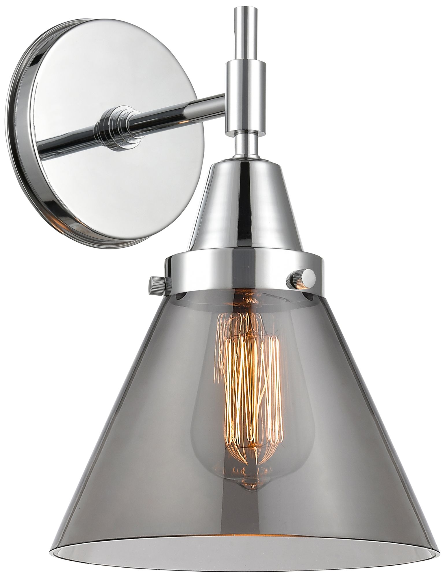 Caden Cone 11.25" High Polished Chrome Sconce w/ Plated Smoke Shade