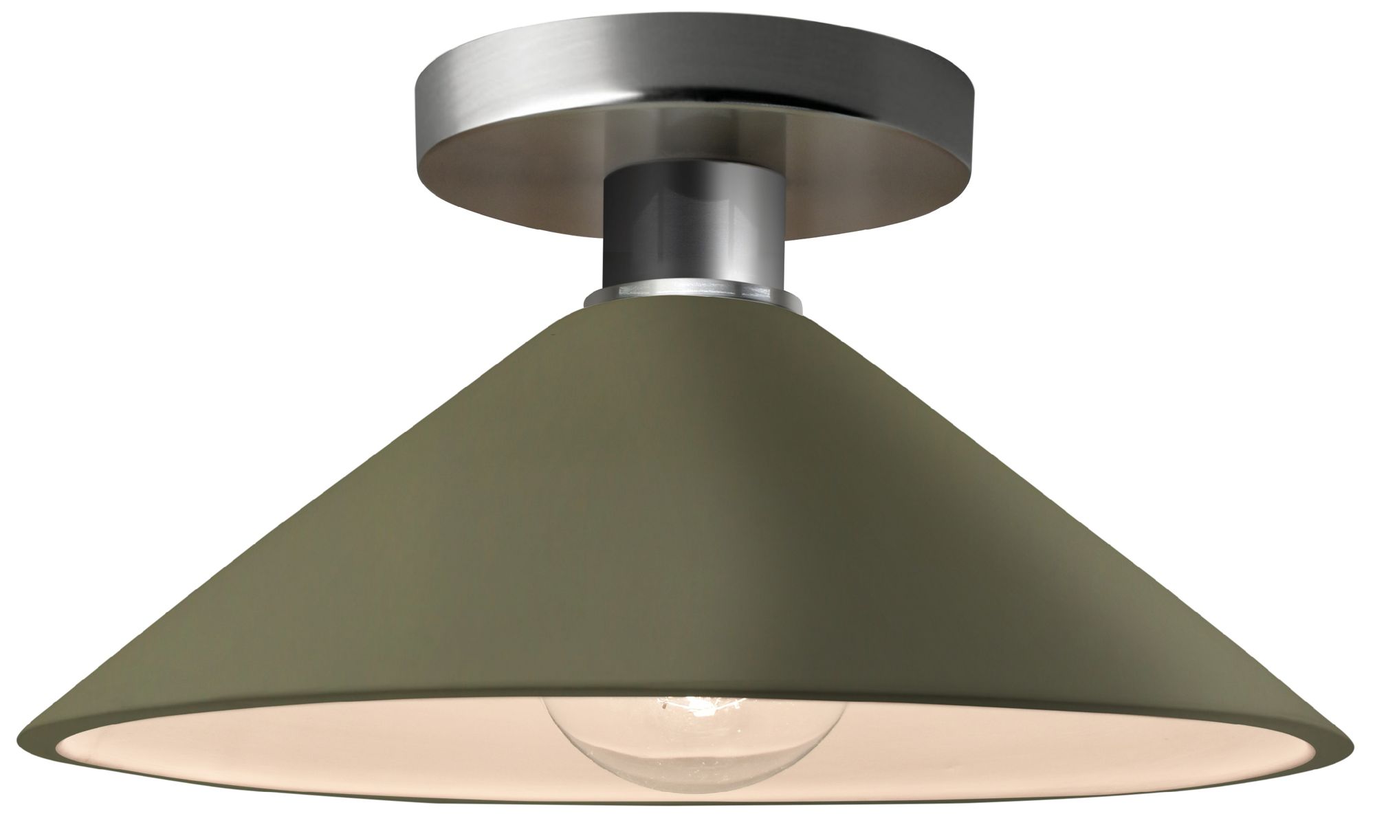 Radiance 11.75"W Matte Green Frame Brushed Nickel Flare LED Semi.Flush