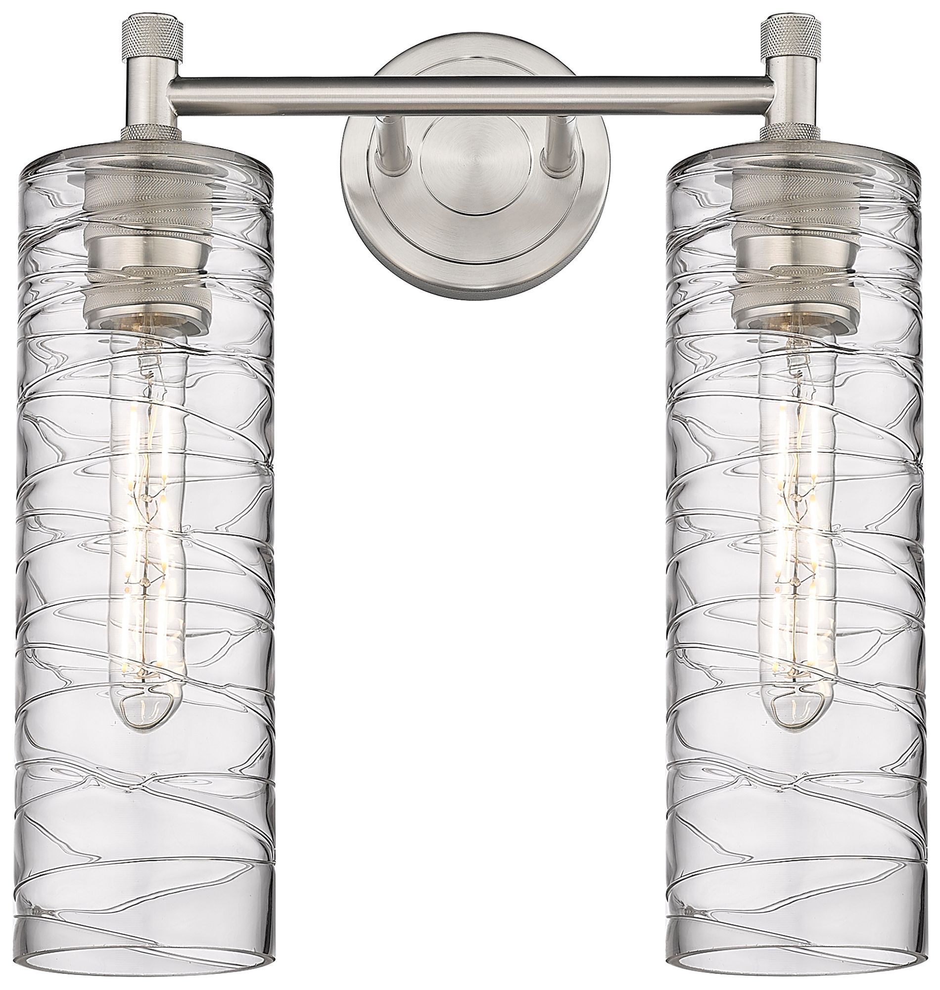 Crown Point 13.88"W 2 Light Satin Nickel Bath Light With Deco Swirl Sh