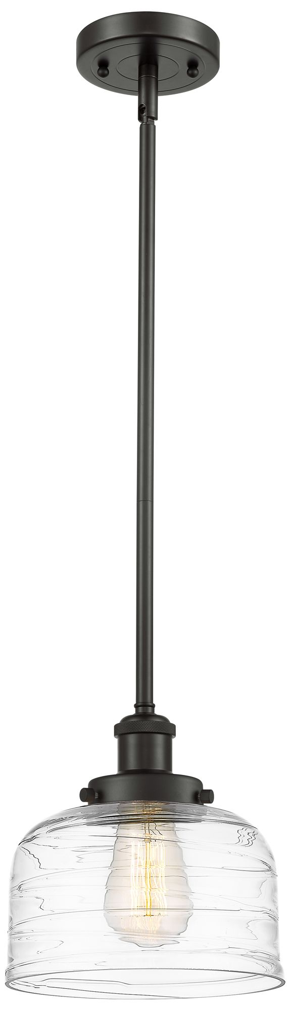 Bell 8"W Oil-Rubbed Bronze Mini Pendant w/ Clear Swirl Glass