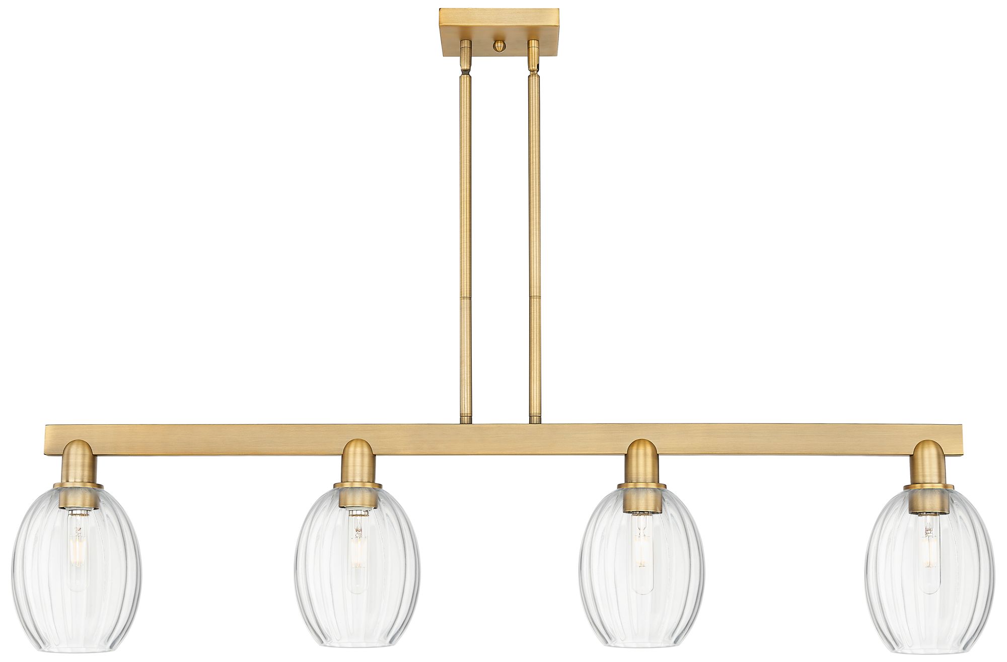 Preston 48"W 4 Light Brass Stem Island Light w/ Bell Clear Shade