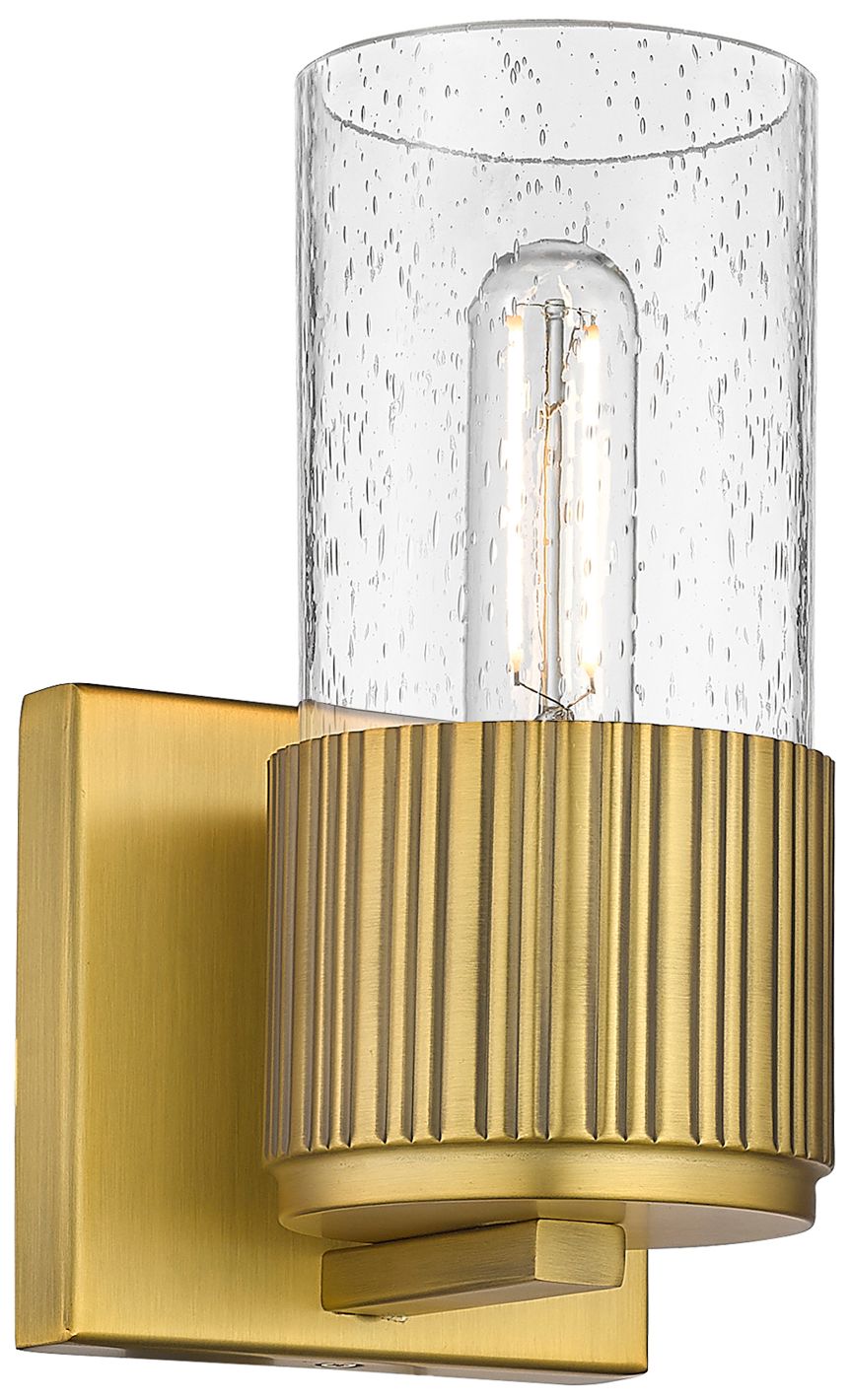 Bolivar 7.5" High Brushed Brass Sconce With Seedy Glass Shade