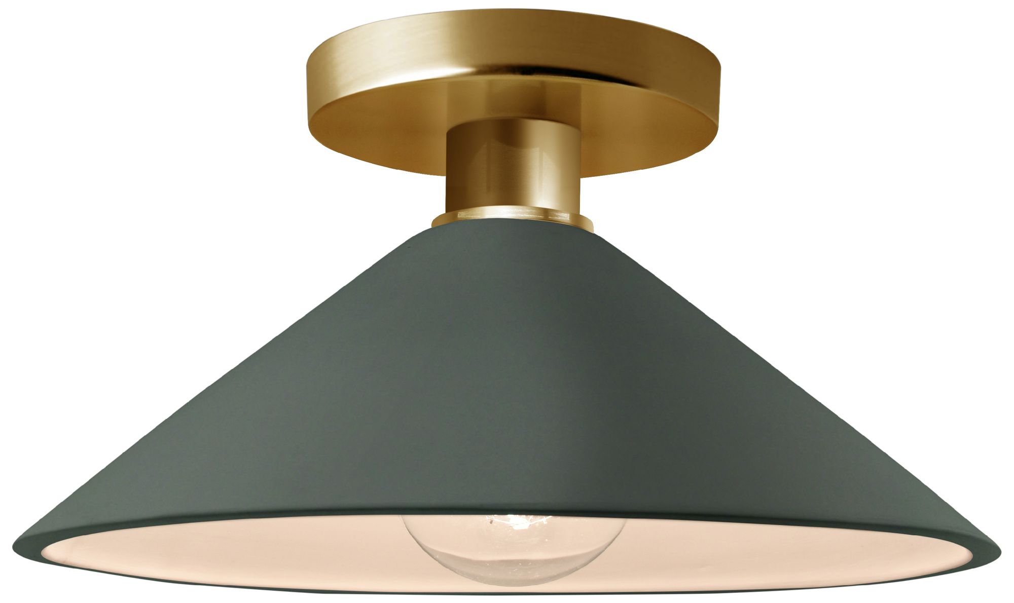 Radiance 11.75"W Pewter Green Frame Polished Brass Metal Flare Semi.Fl