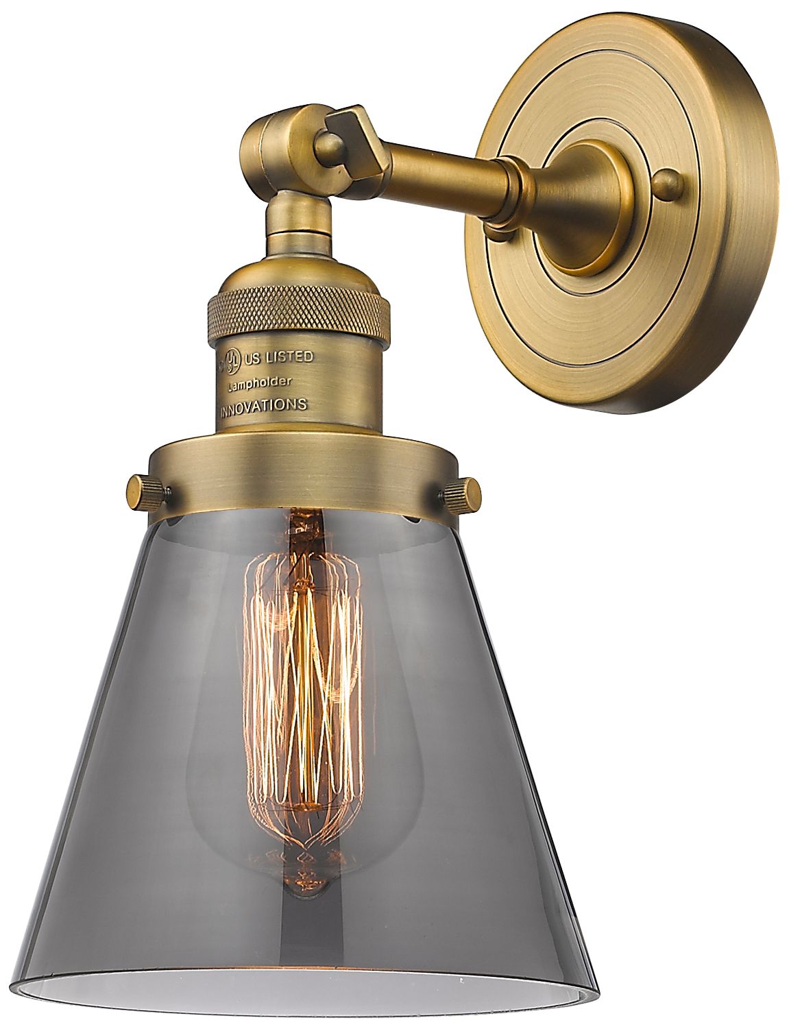 Franklin Restoration Small Cone 6" Brushed Brass Sconce w/ Smoke Shade