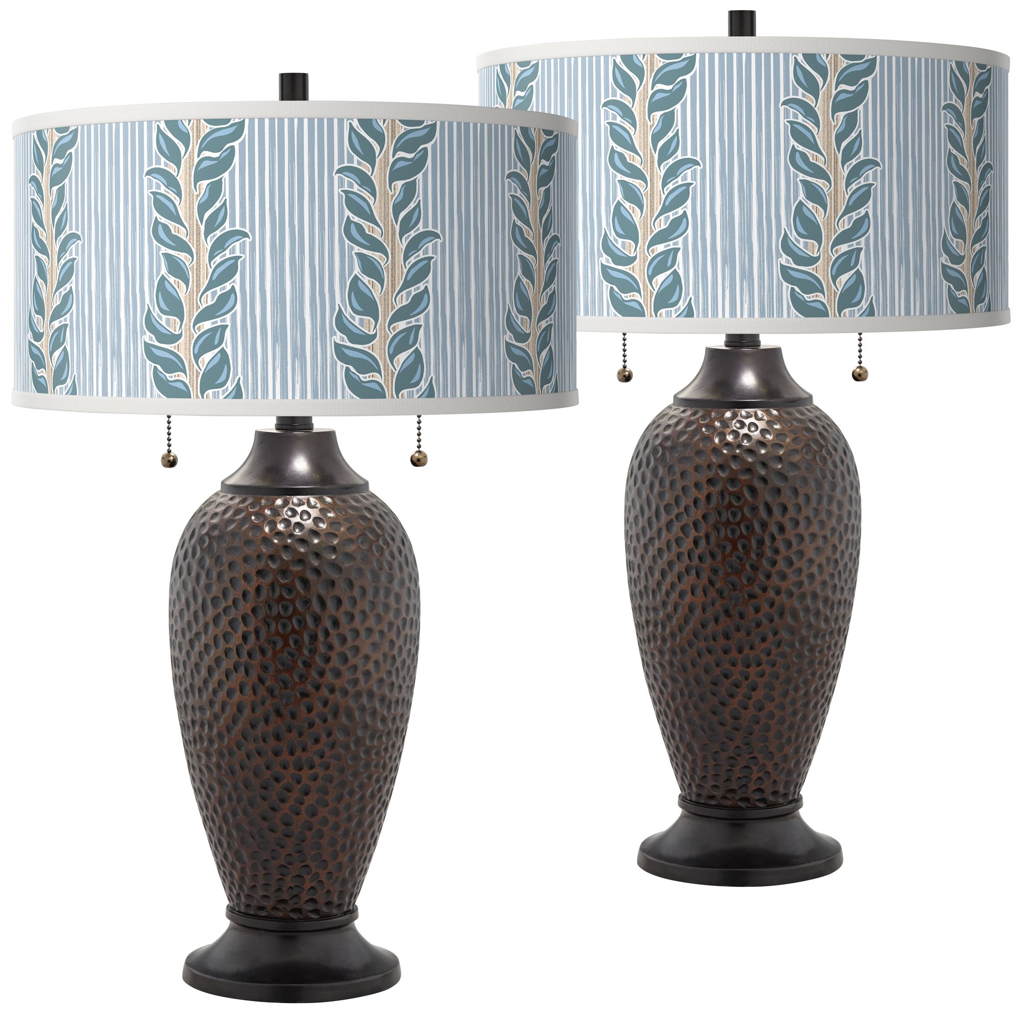 Giclee Glow Drifting Petals 24 1/2" Hammered Bronze Lamps Set of 2