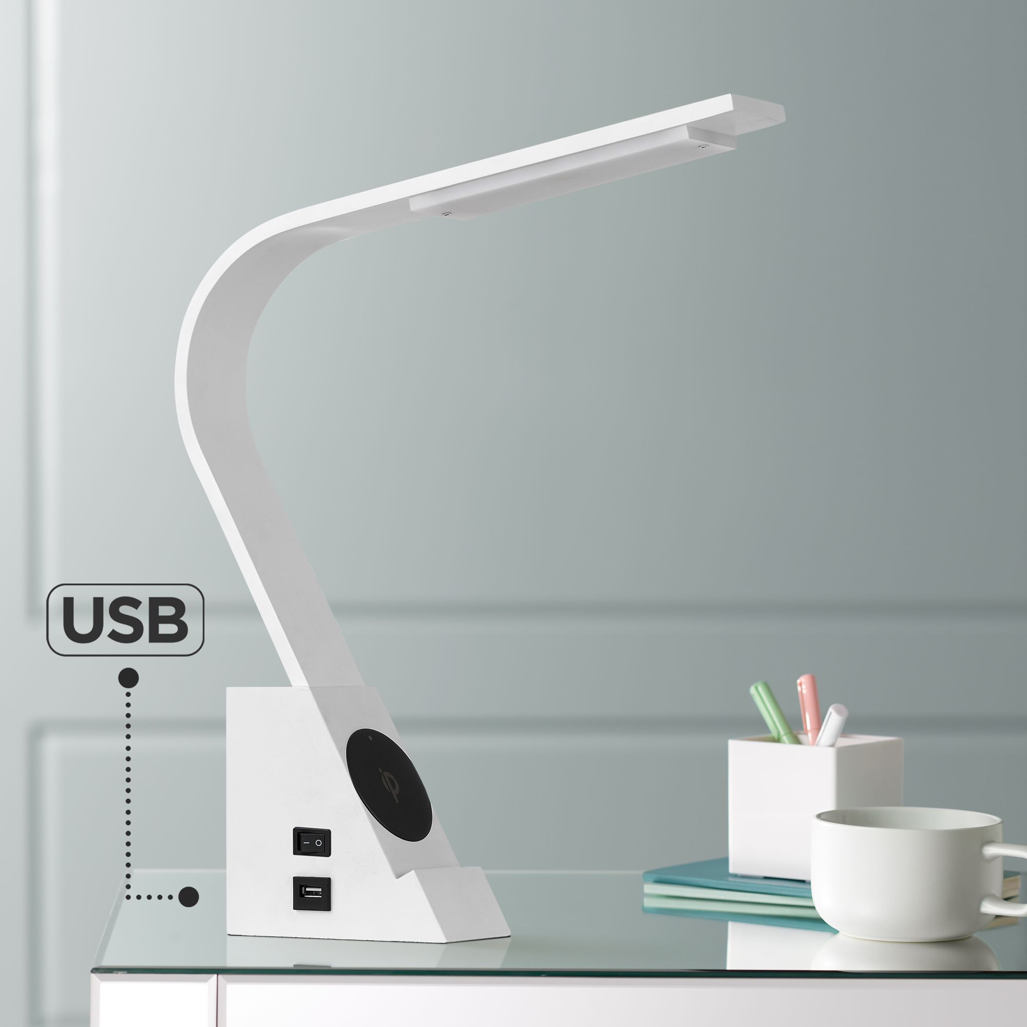 Cal Lighting Convolution White 17 1/2" Modern LED USB Desk Lamp