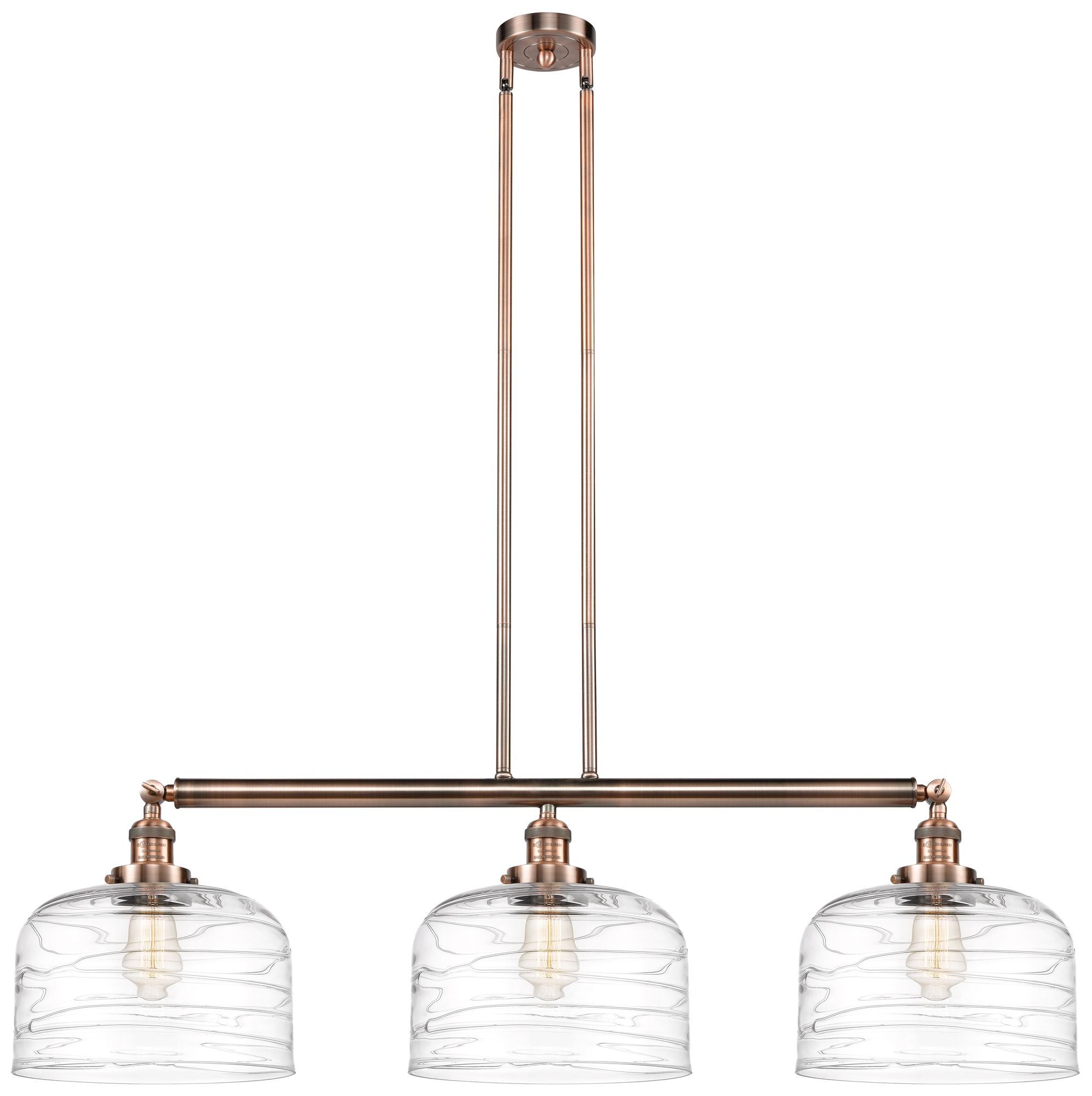 Bell 3 Light 42" Island Light - Antique Copper - Clear Deco Swirl Sha