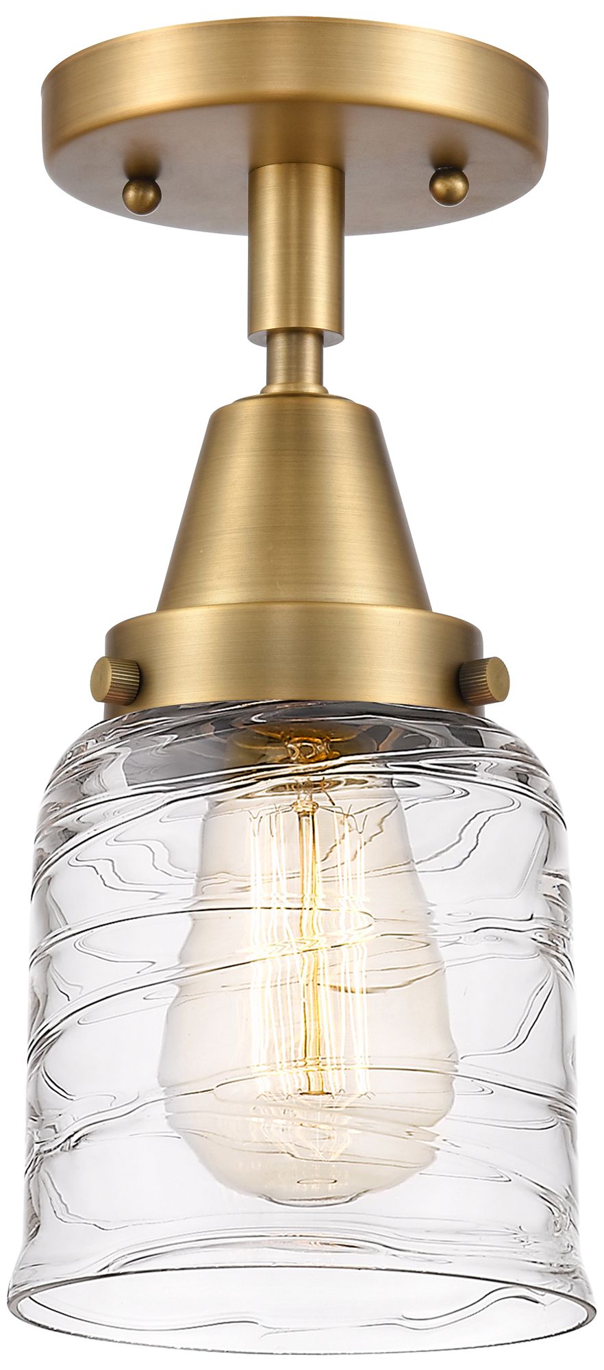 Caden Bell 5" LED Flush Mount - Brushed Brass - Deco Swirl Shade