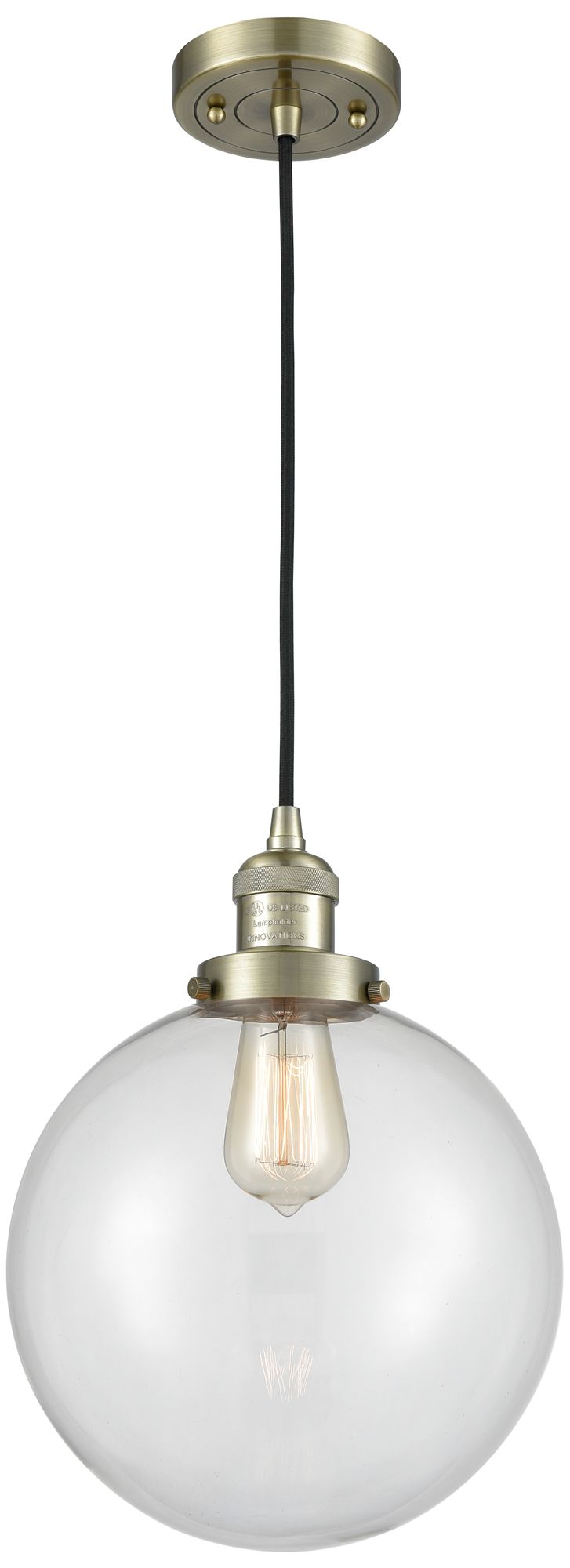 Franklin Beacon 10" Wide Antique Brass Corded Mini Pendant w/ Clear Sh