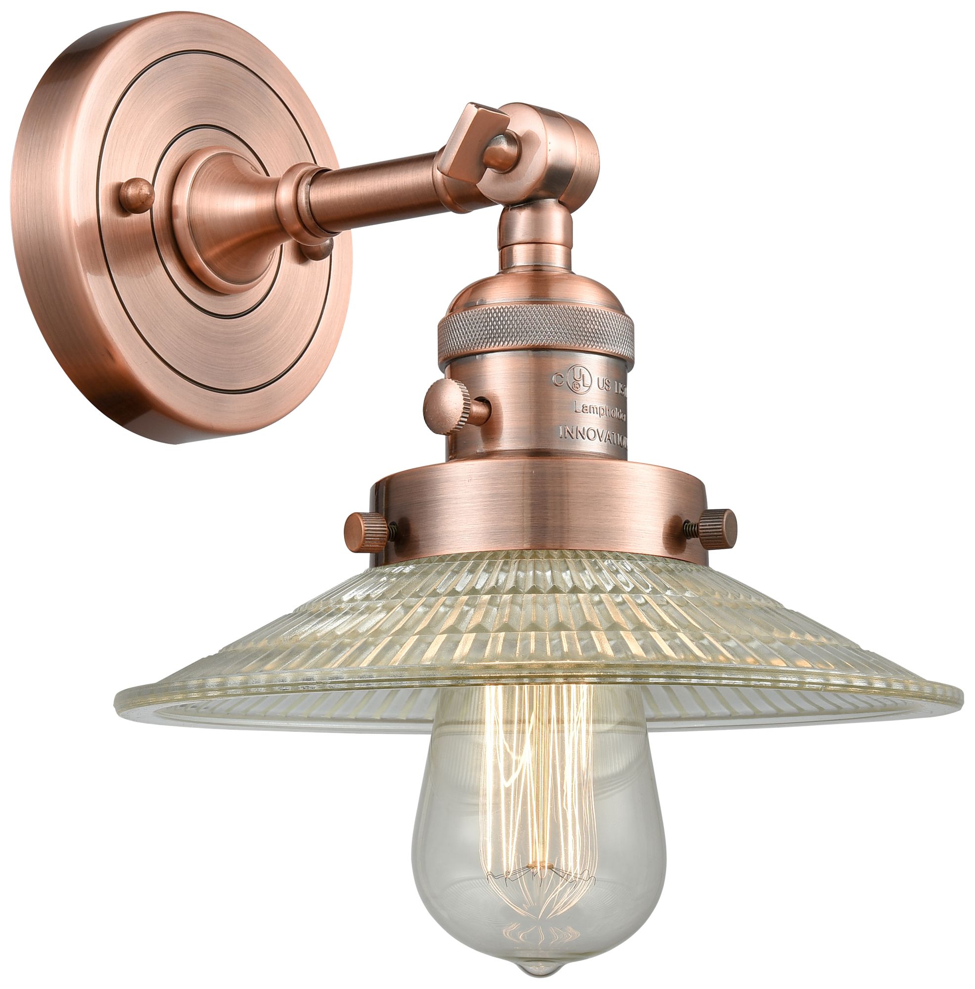 Halophane 8" High Copper Sconce w/ Clear Halophane Shade