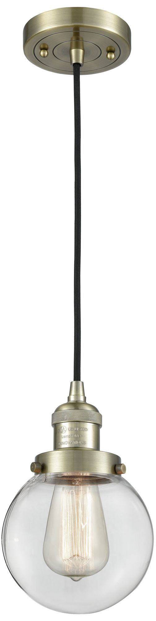 Franklin Beacon 6" Wide Antique Brass Corded Mini Pendant w/ Clear Sha