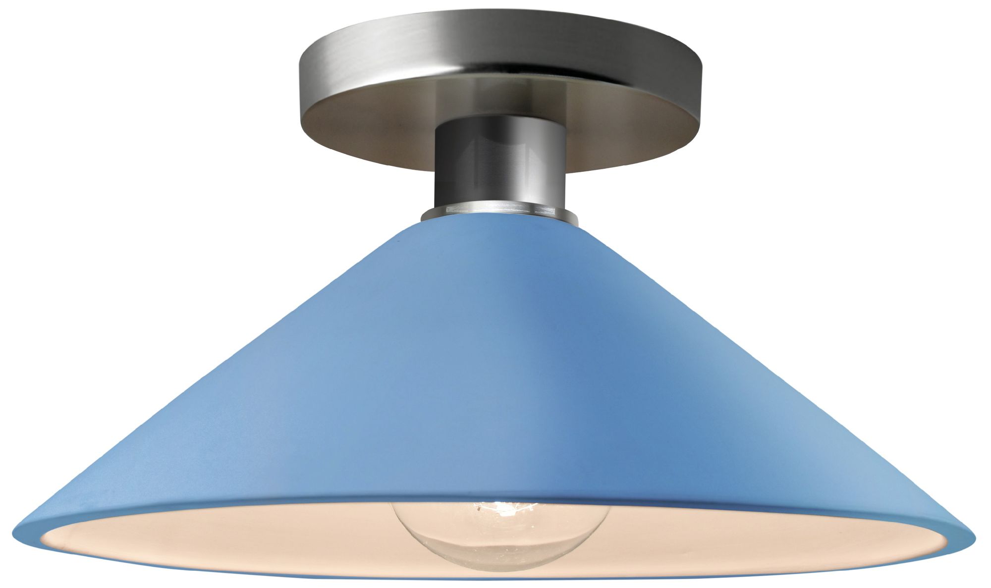 Radiance 11.75"W Sky Blue Frame Brushed Nickel Metal Flare Semi.Flush