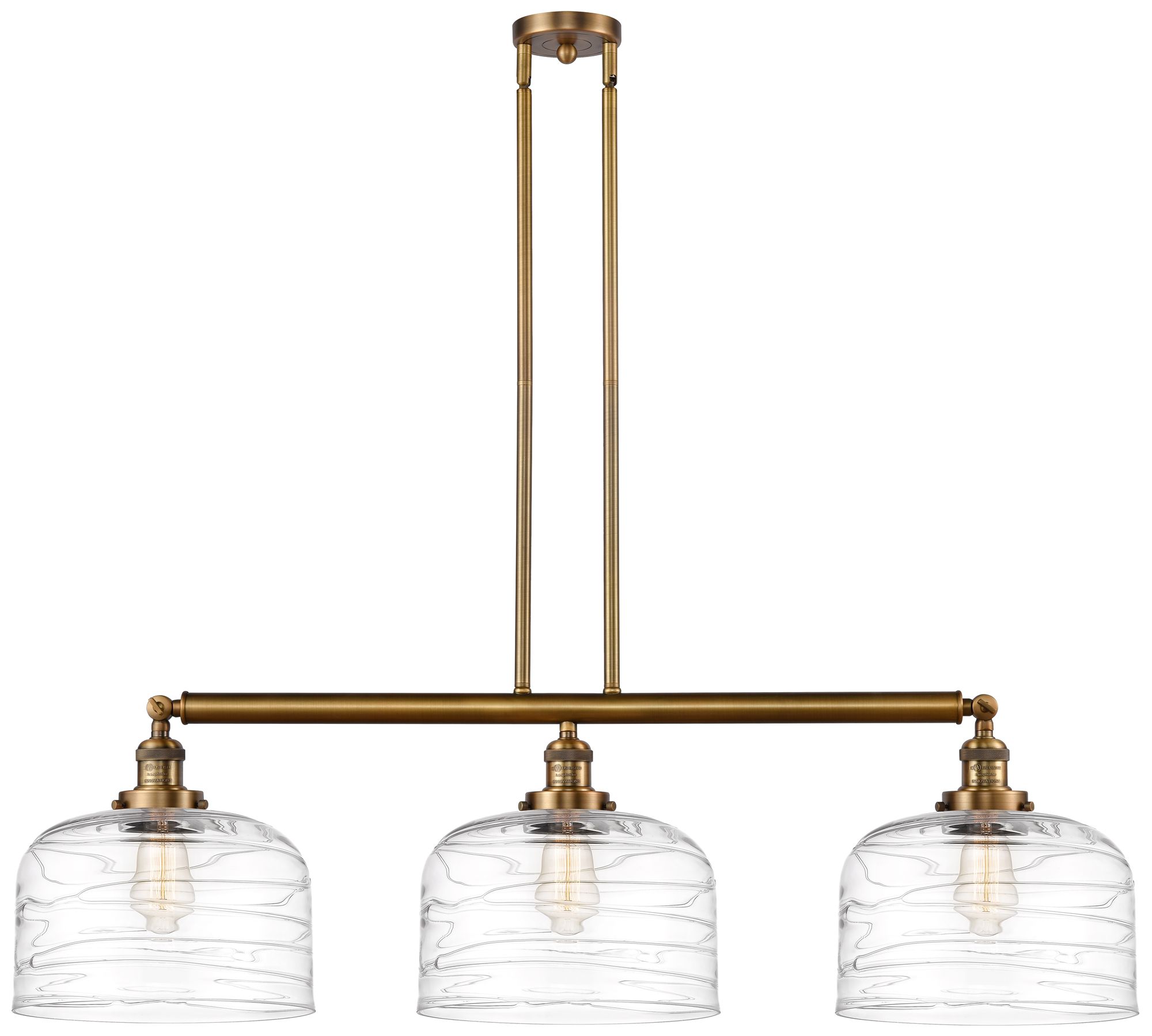 Bell 3 Light 42" Island Light - Brushed Brass - Clear Deco Swirl Shad